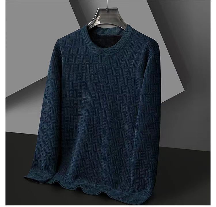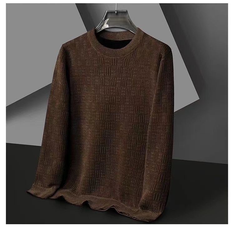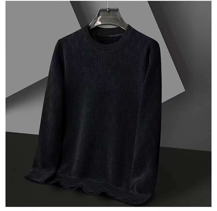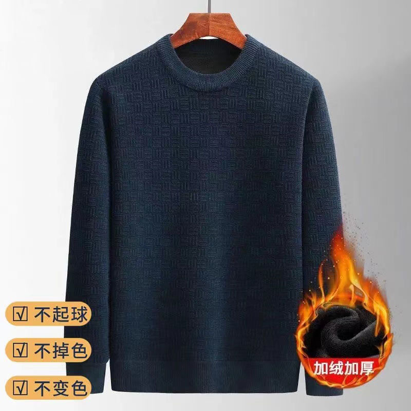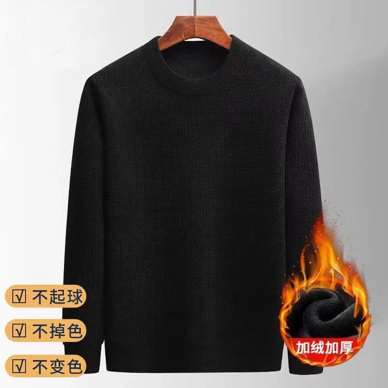 秋冬新款亲肤保暖长袖打底中年男士毛衣加绒加厚保暖内衣圆领秋冬季雪尼尔打底针织衫爸爸装