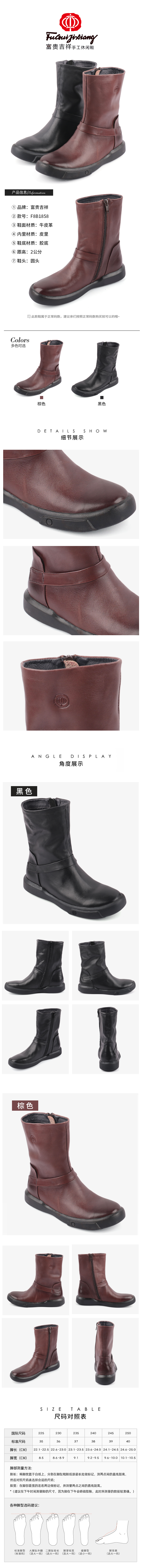 富贵吉祥2021时尚小牛皮女靴圆头F8B1858
