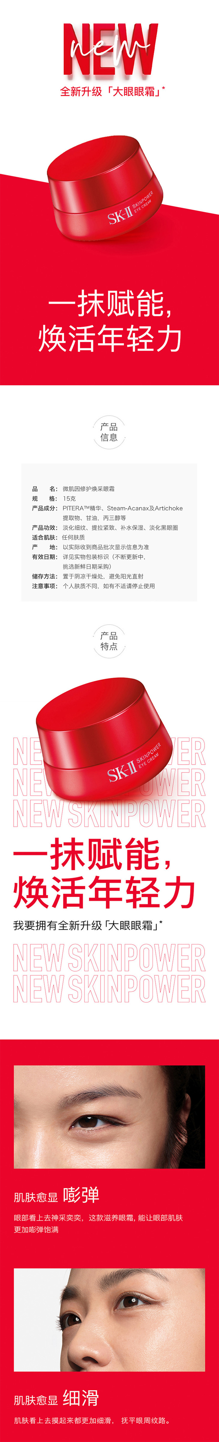 SK-II微肌因修护焕采精华眼霜15ml滋养眼部 QM