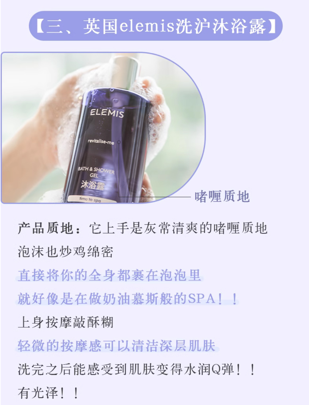 【品名】ELEMIS爱丽美斯洗护系列300ml酒店版 沐浴露/洗手液/护发素/身体乳