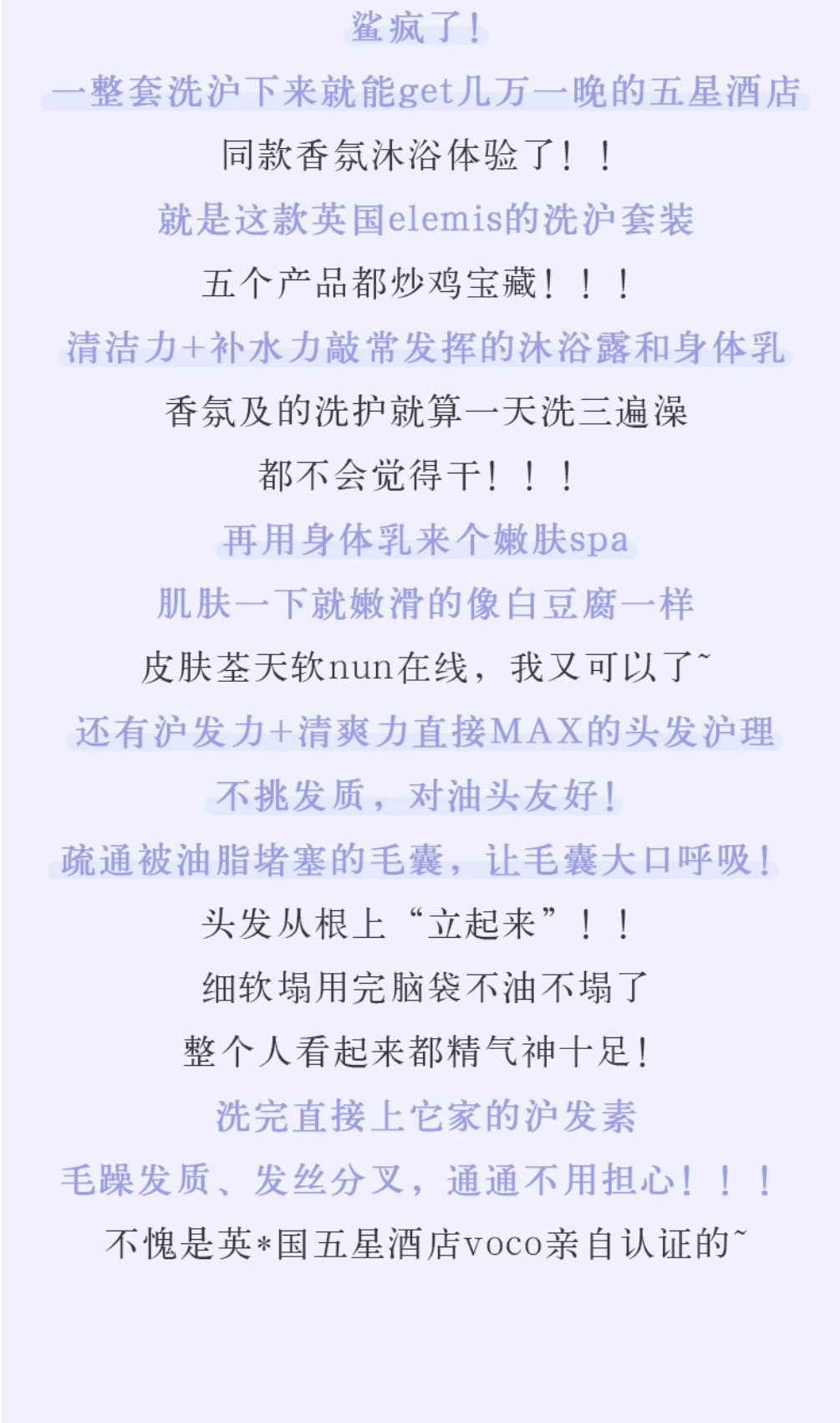 【1.11王炸割肉价】ELEMIS爱丽美斯洗护系列300ml酒店版 沐浴露/洗手液/护发素/身体乳(护发素身体乳洗手液限25年5月)