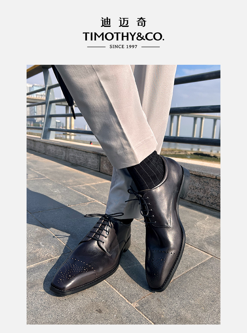 TIMOTHY&CO./迪迈奇男士布洛克德比鞋方头正装新郎鞋商务休闲