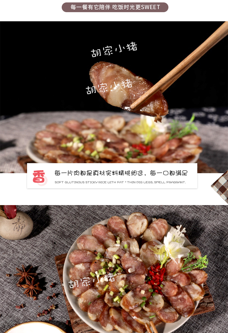【胡家小猪】广式甜肠 原味 青猪肉加淀粉 烧烤必备(非烟熏)
