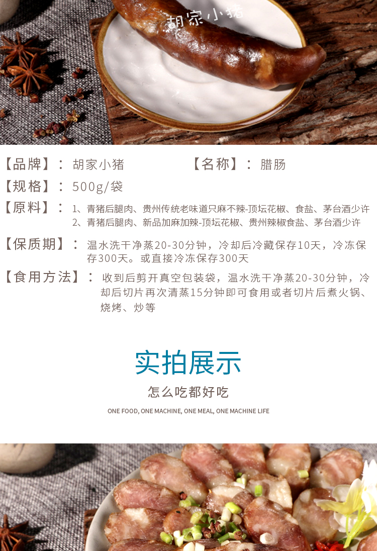 已熏好【胡家小猪】烟熏麻辣香肠腊肠顶坛花椒融入贵州辣椒508g