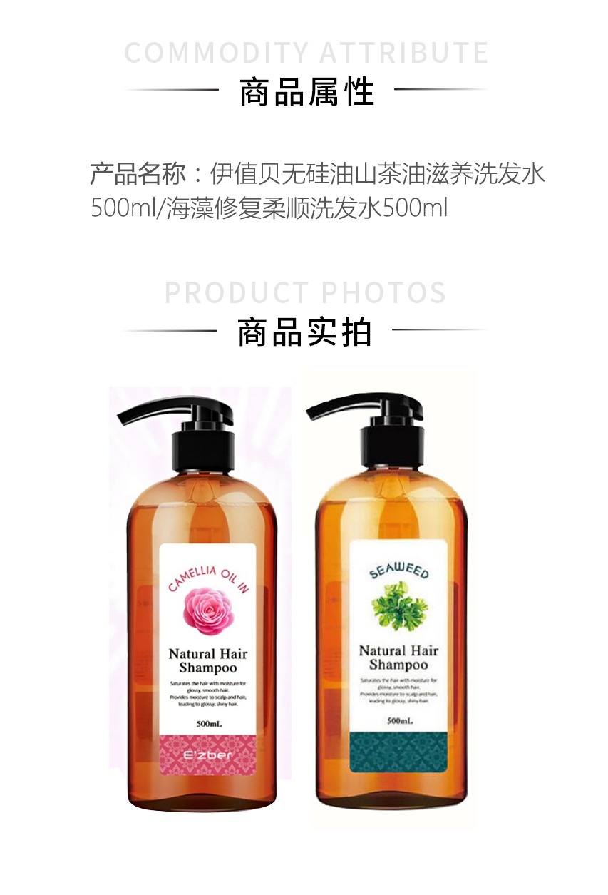 【清仓好价|买二送一】伊值贝无硅油山茶油滋养洗发水500ml/海藻修复柔顺洗发水500ml