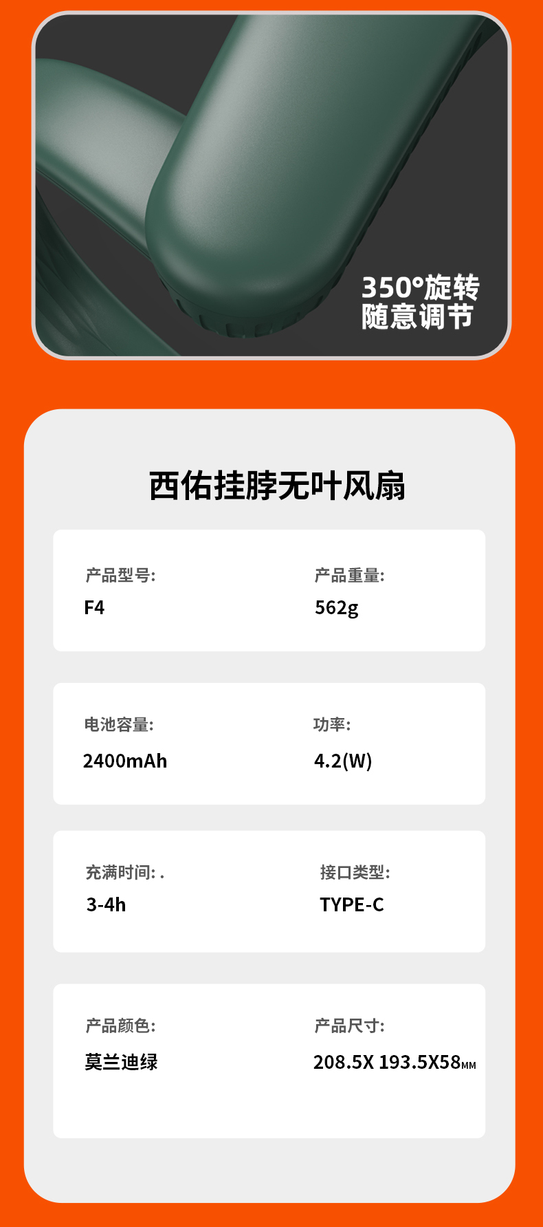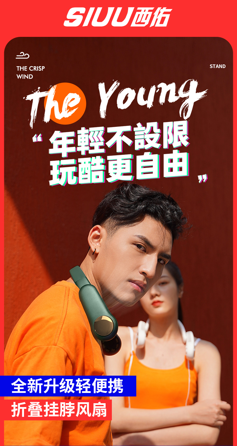 SIUU西佑挂脖风扇随身便携式迷你USB小风扇懒人挂颈静音学生宿舍办公室折叠小型大风力手持充电风扇
