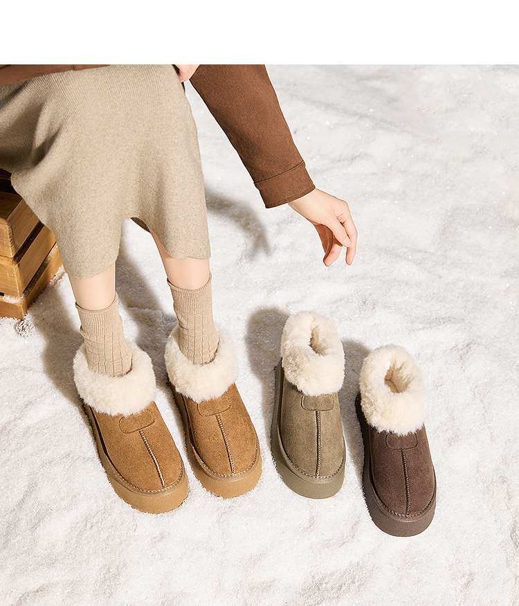 西遇厚底雪地靴女鞋冬季爆款百搭外穿毛毛鞋加绒保暖增高棉鞋Y0057355
