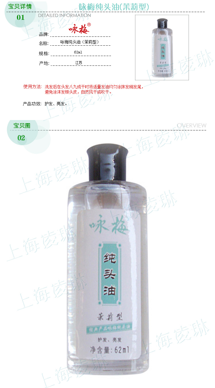 咏梅纯头油(茉莉型)62ml