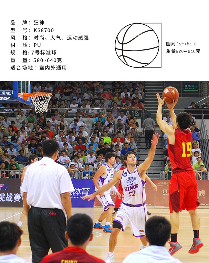 狂神室外水泥地篮球 KS8700 7号成人比赛PU篮球