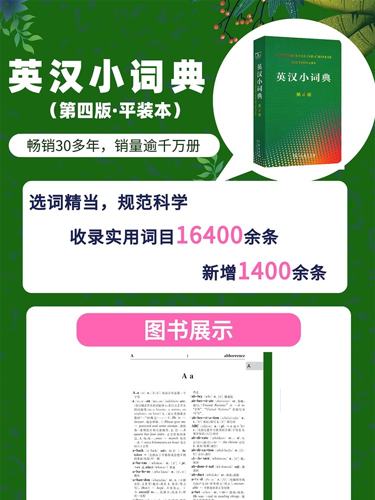 《英汉小词典》(第4版)作为《英汉小词典》的*新版本,在1999年修订本的基础上进行了大幅度的修订。全书精选实用条目16400余条,其中新增1400余条。词典释义准确,例证典型,全书附录内容丰富,包括:不规则动词表、常见英语人名表、世界各国和地区主要城市表、中国国家机*名称英译表,适合中小学生及外语学习者使用。