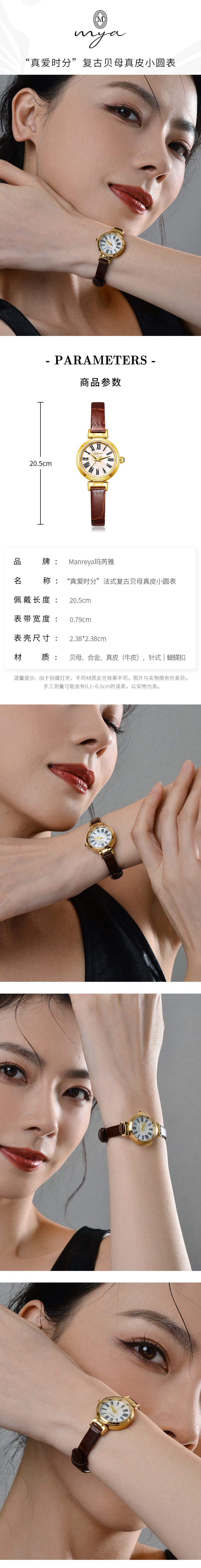 Manreya玛芮雅“真爱时分”法式复古贝母真皮小圆表