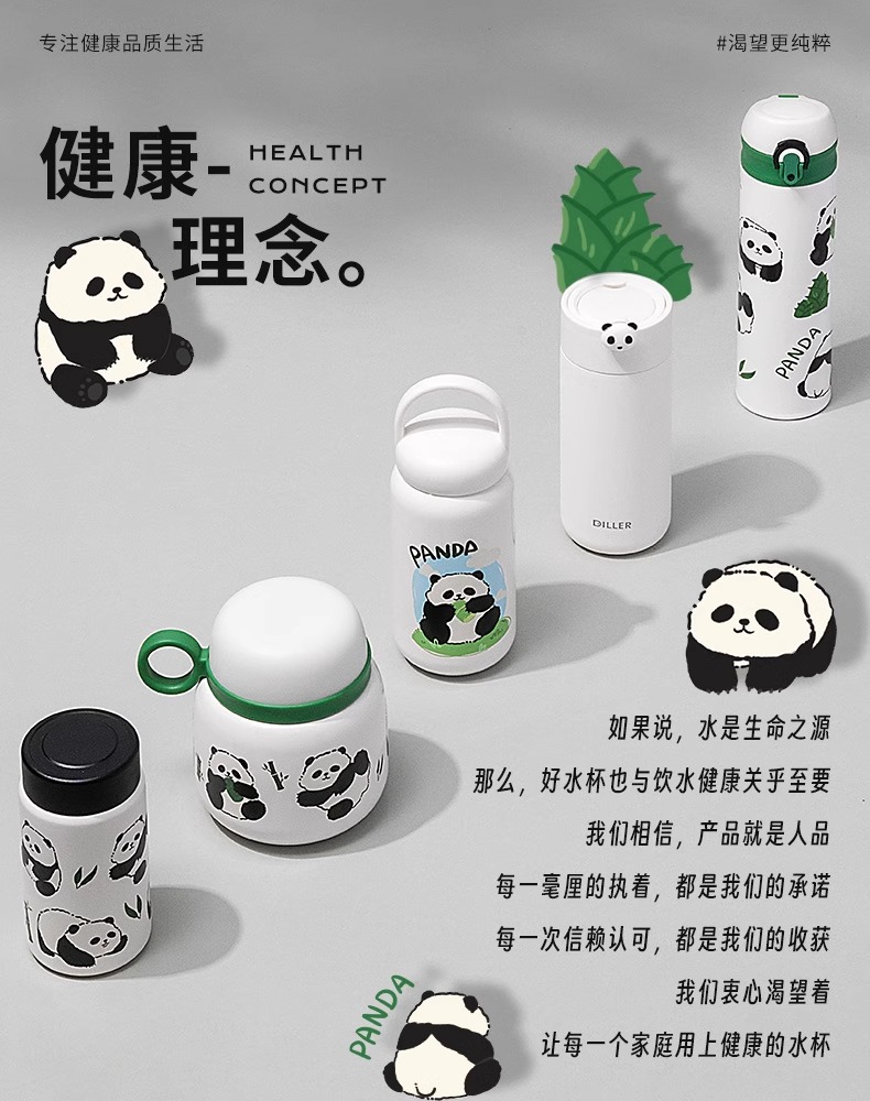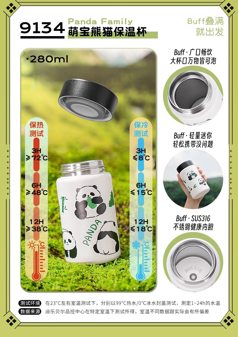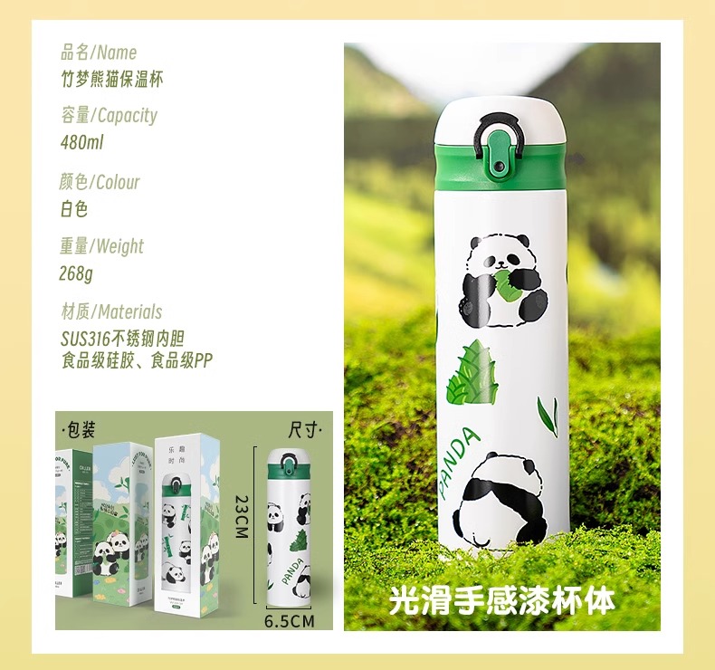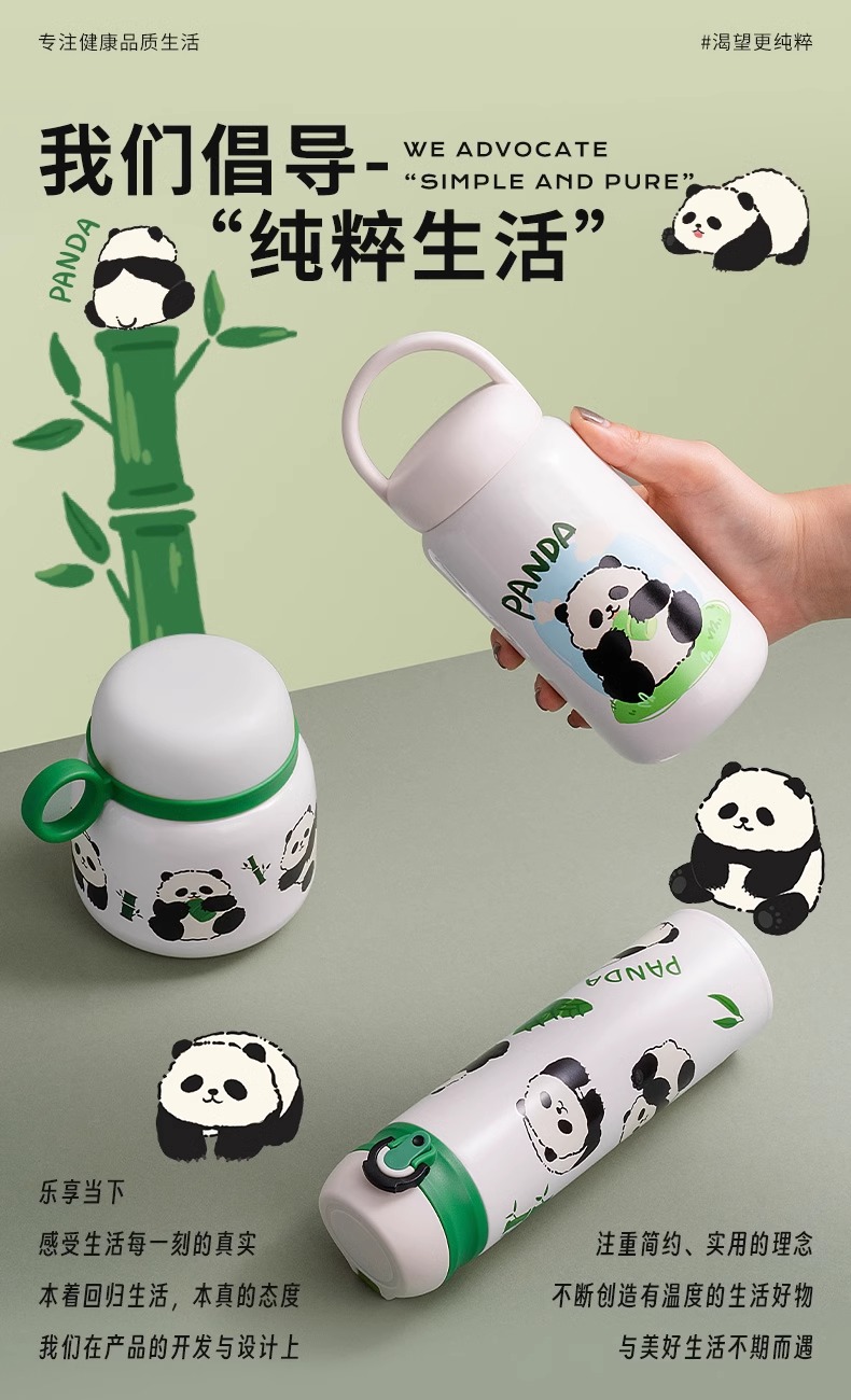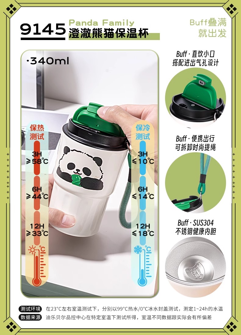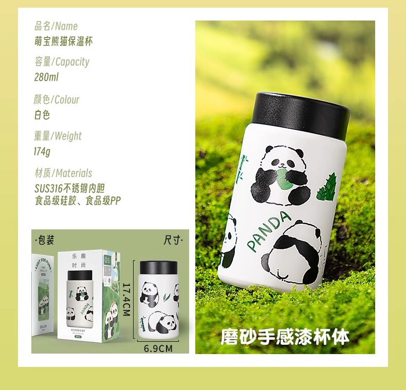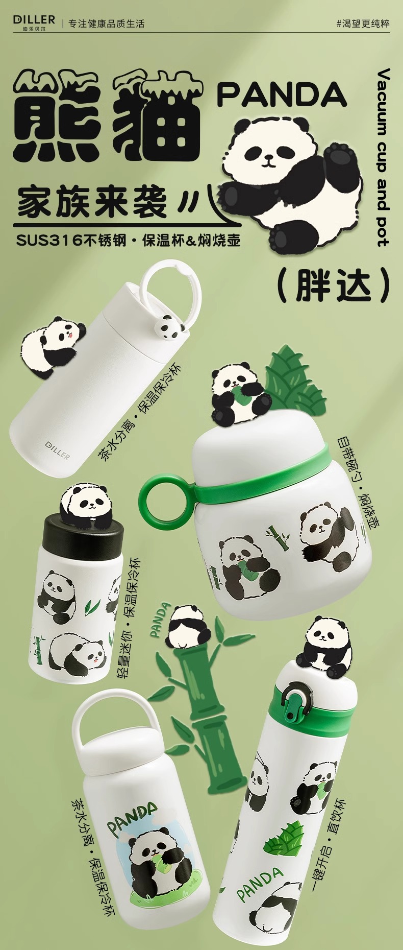 迪乐贝尔熊猫保温杯女可爱呆萌创意便携学生杯子高颜值水杯150ml/270ml/280ml/340ml/420ml/480ml/2024新款