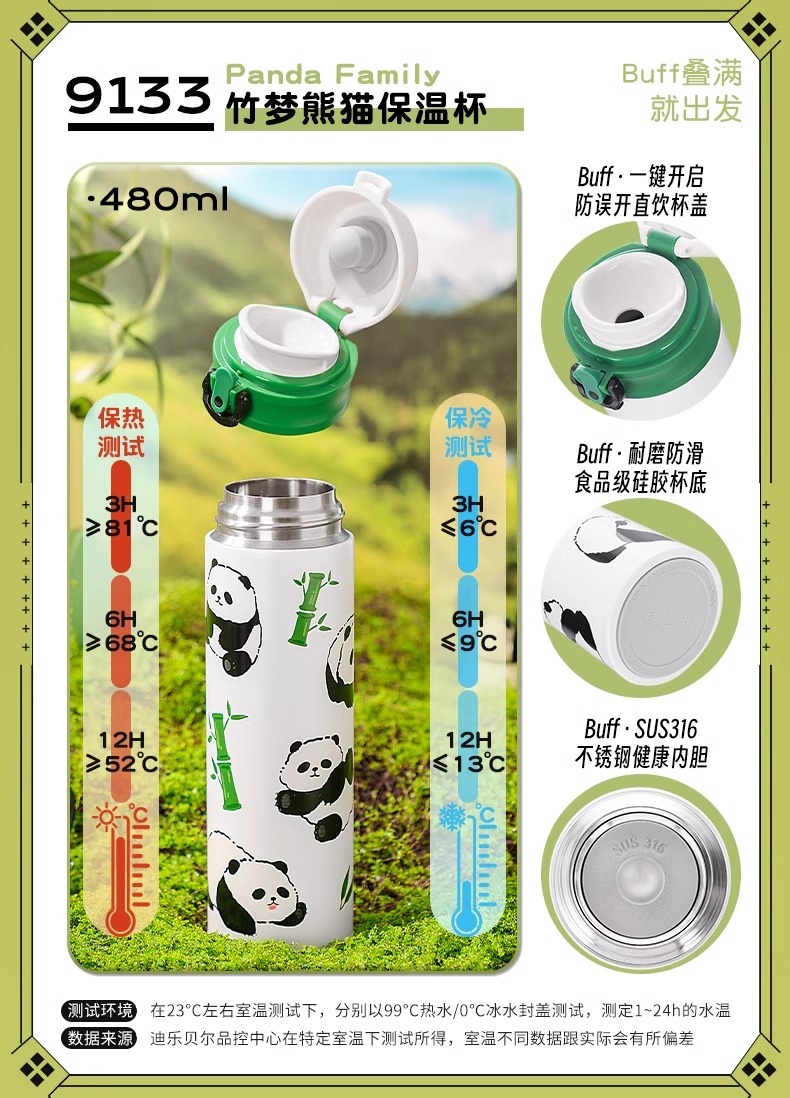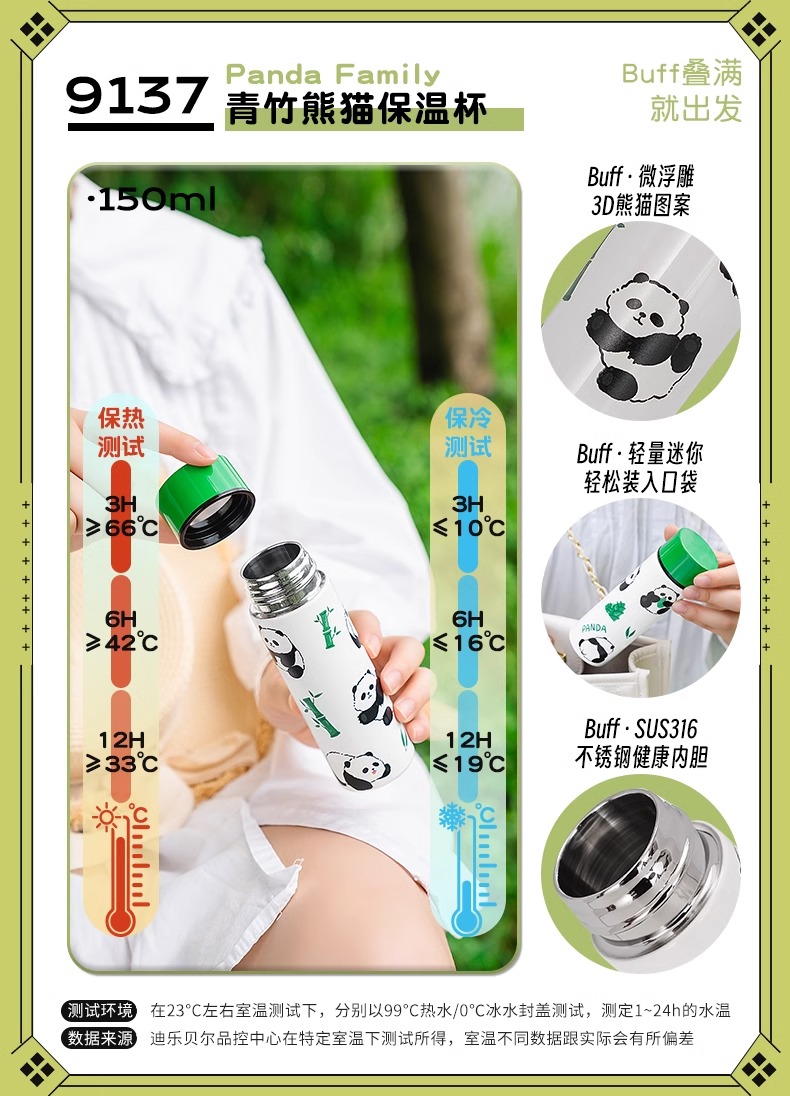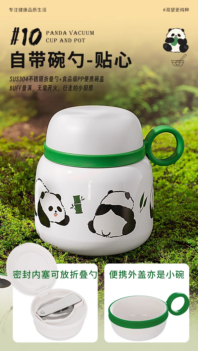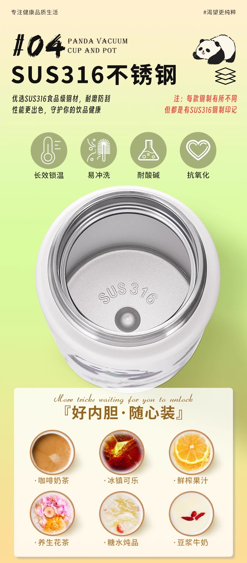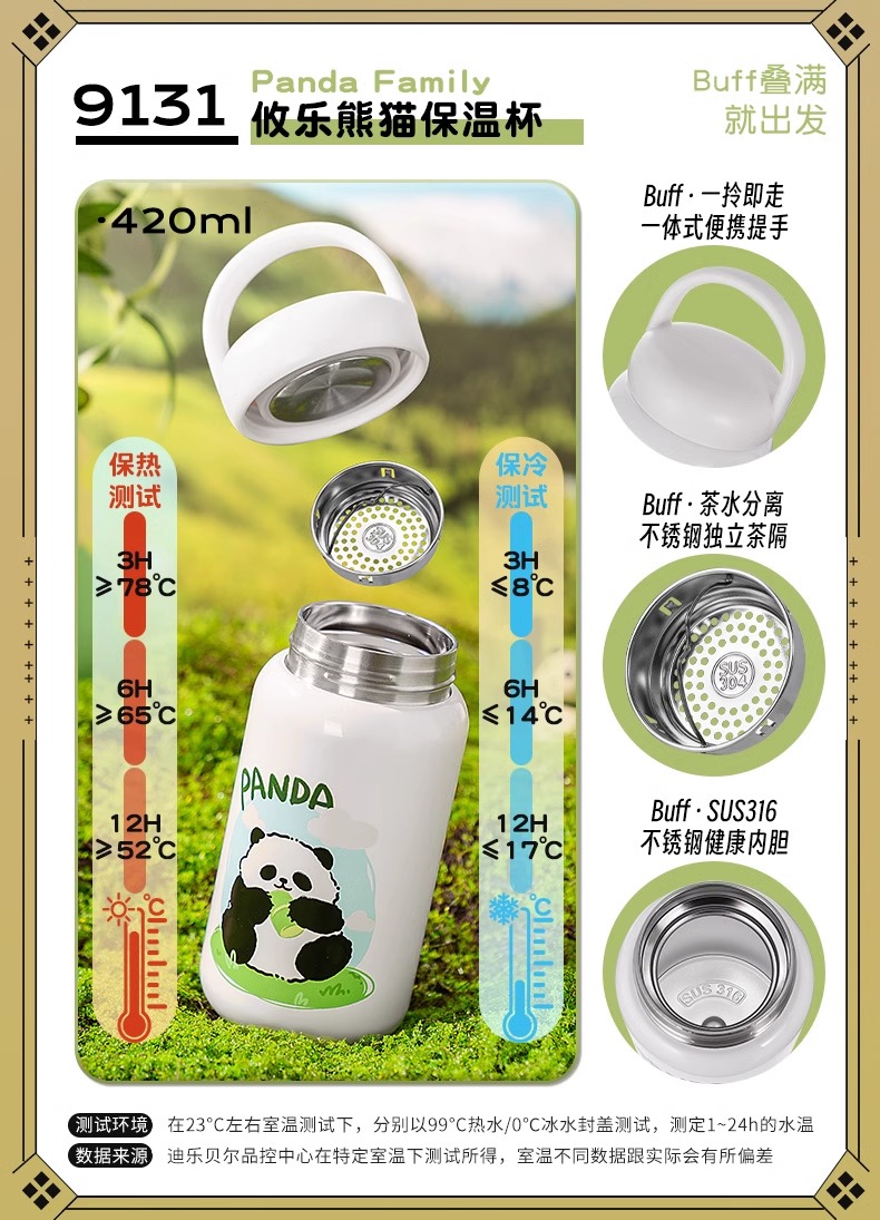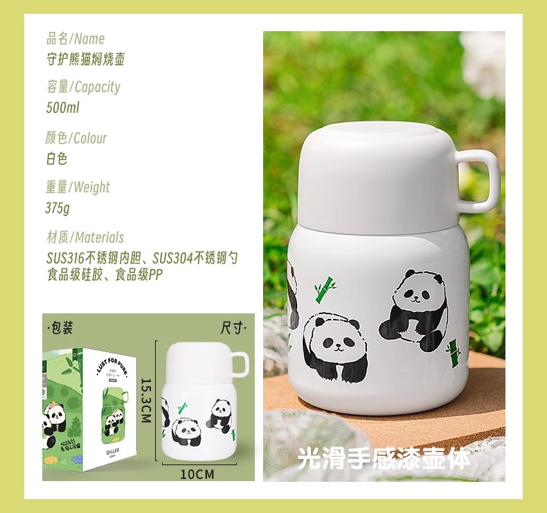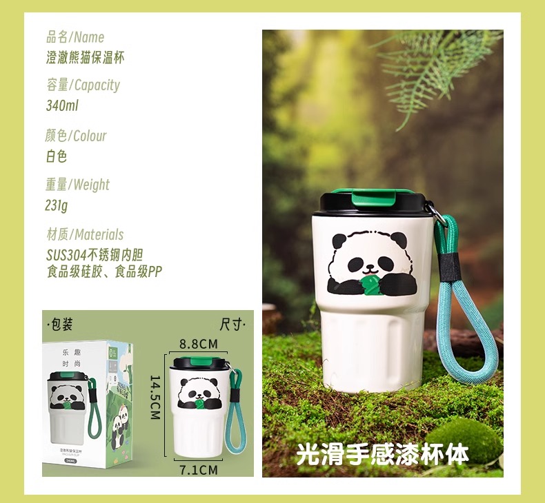 迪乐贝尔熊猫保温杯女可爱呆萌创意便携学生杯子高颜值水杯150ml/270ml/280ml/340ml/420ml/480ml/2024新款