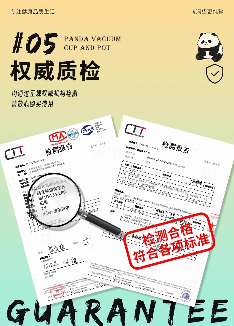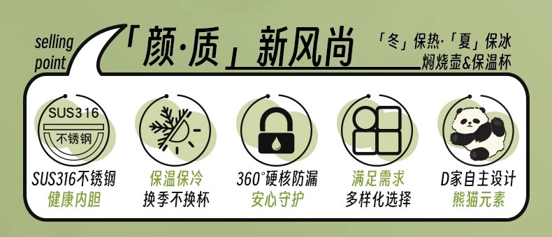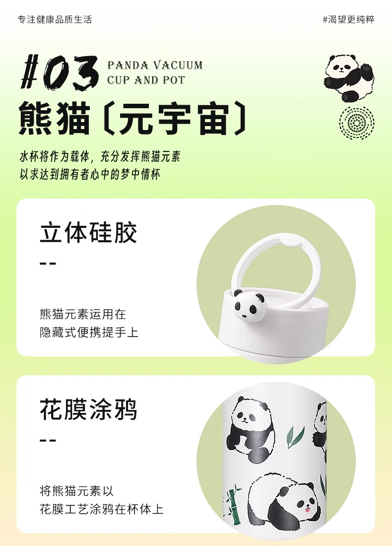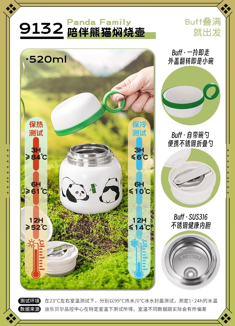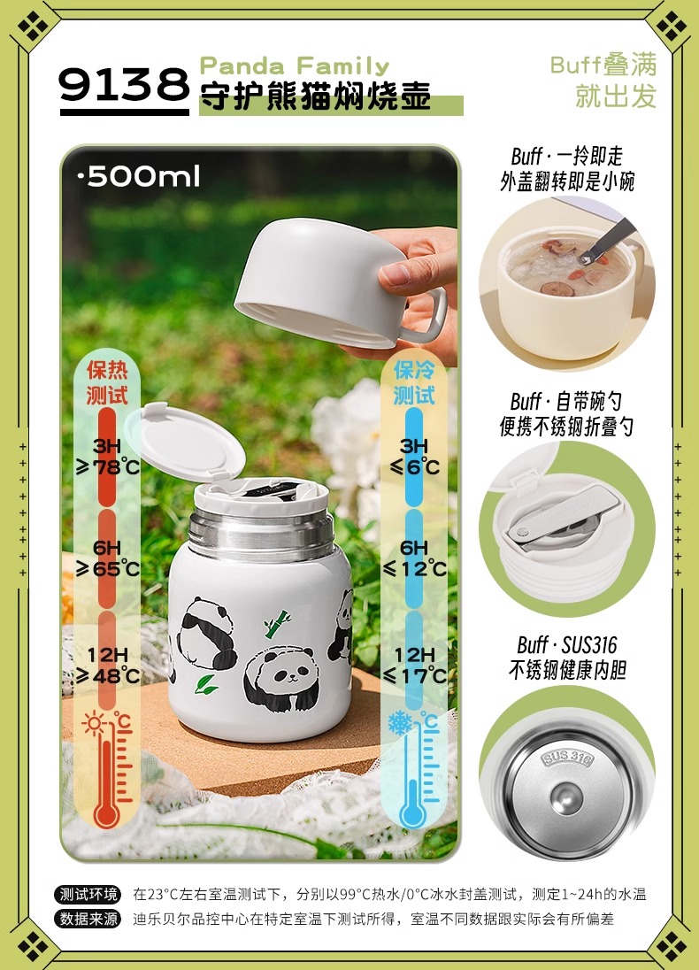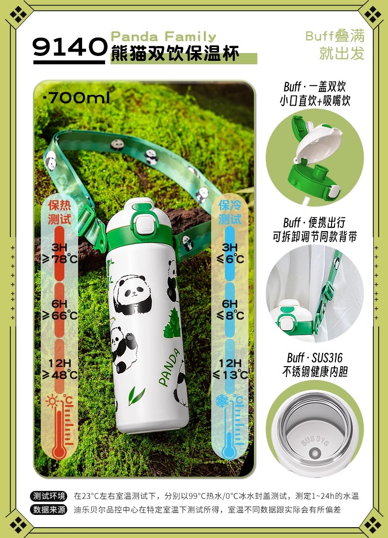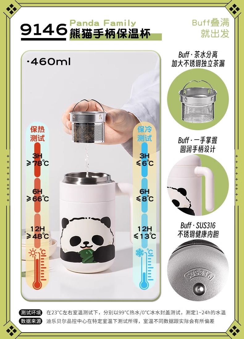 迪乐贝尔熊猫保温杯女可爱呆萌创意便携学生杯子高颜值水杯150ml/270ml/280ml/340ml/420ml/480ml/2024新款