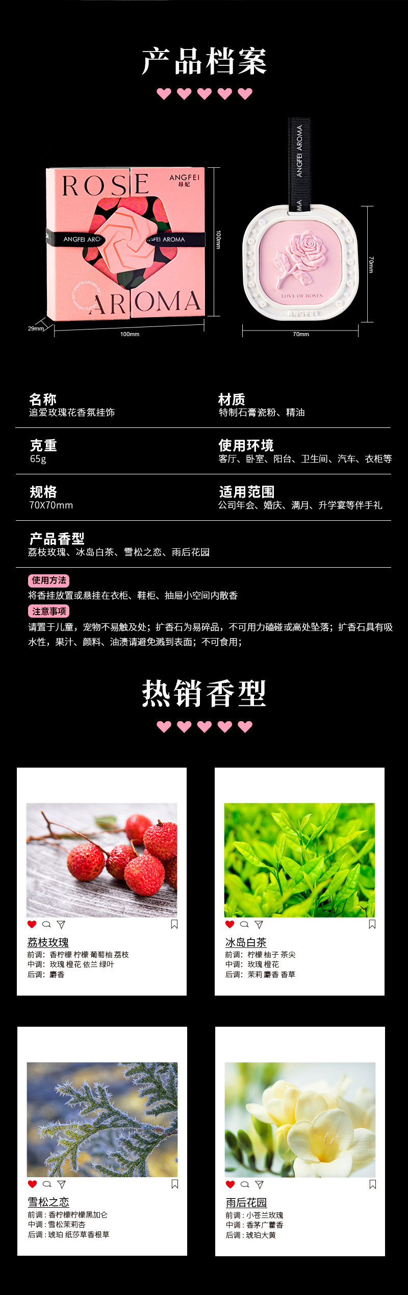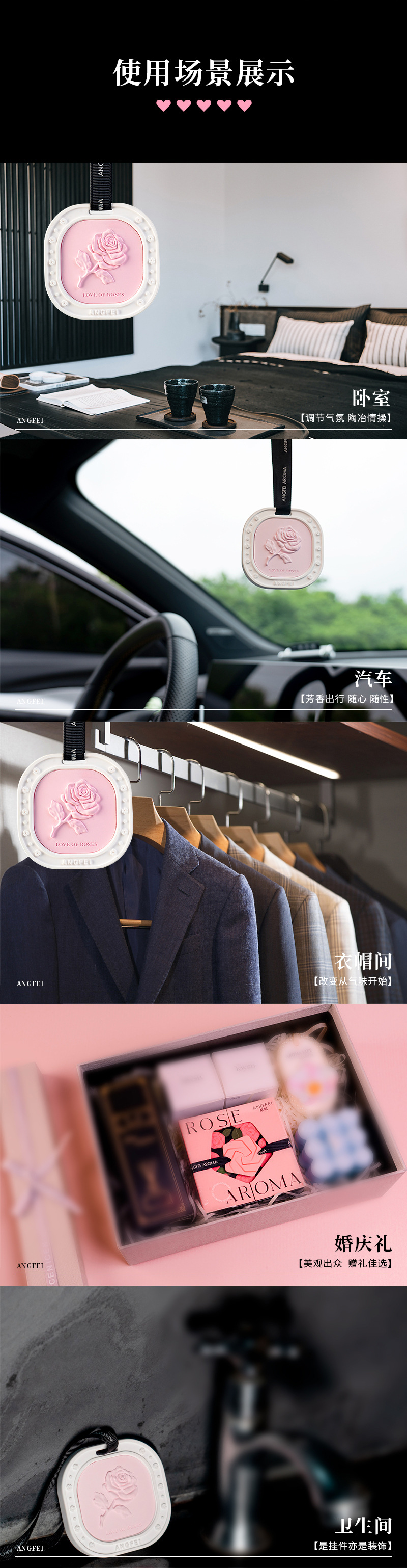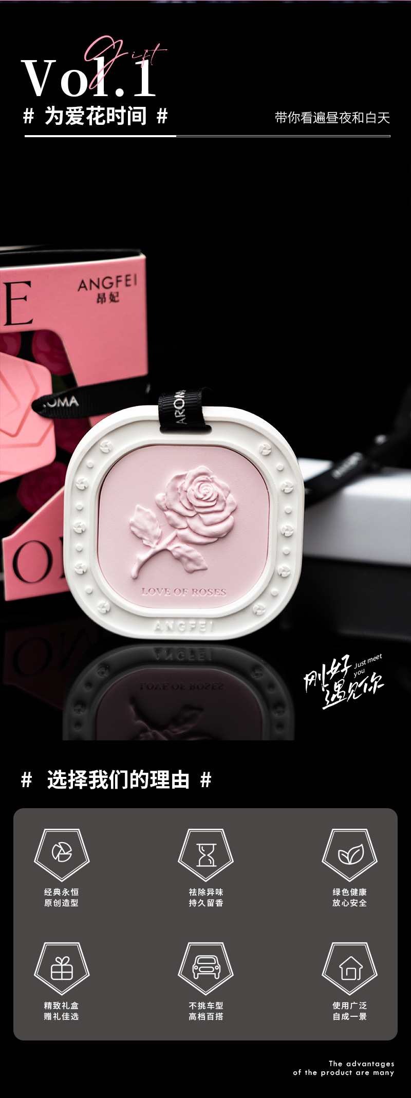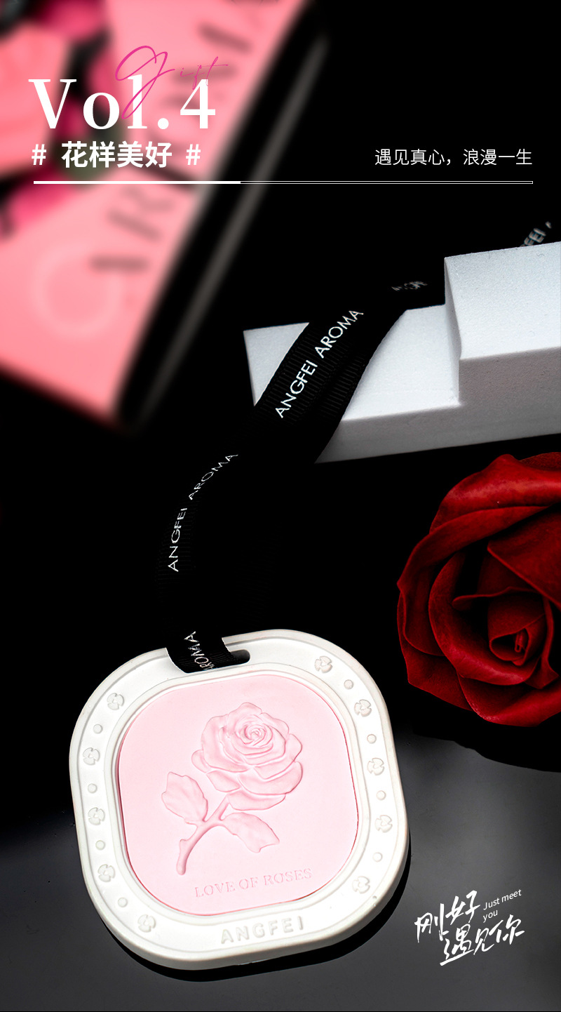 【趁现在,勇敢爱!】玫瑰香薰片车载 衣柜香氛挂件 扩香石膏 车内挂饰 伴手礼内搭 生日礼品-QQ