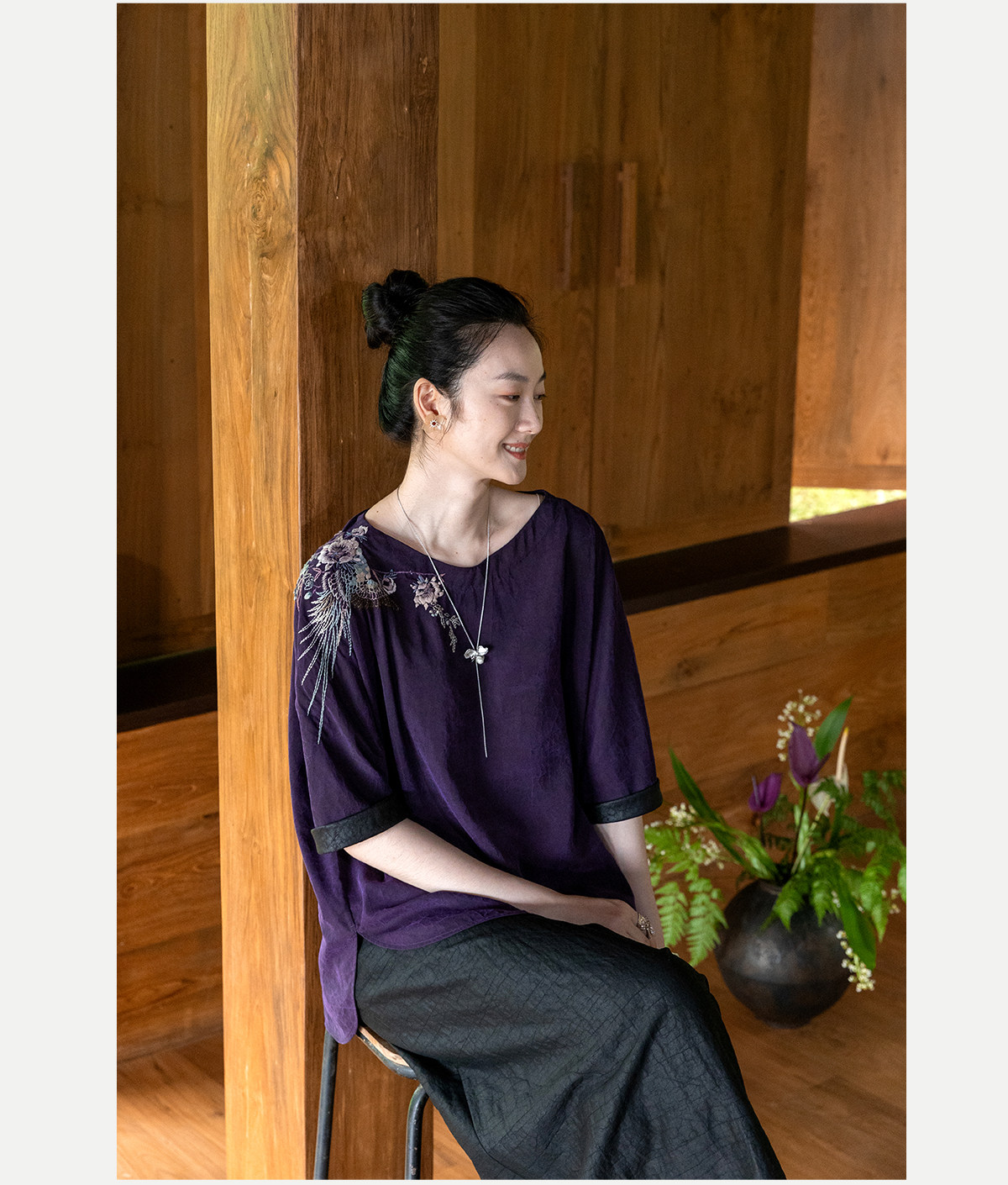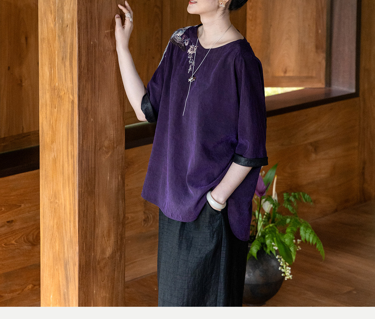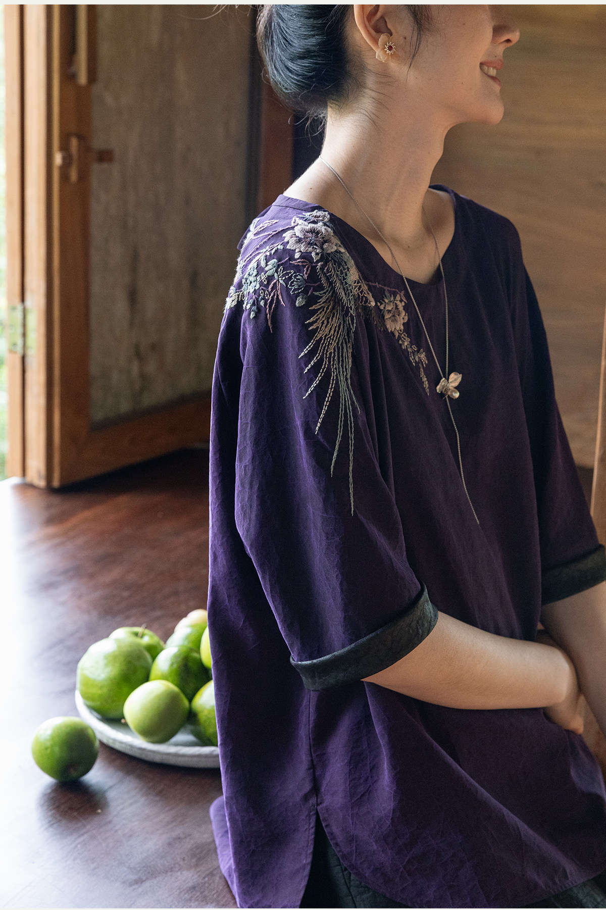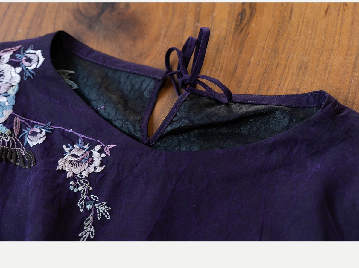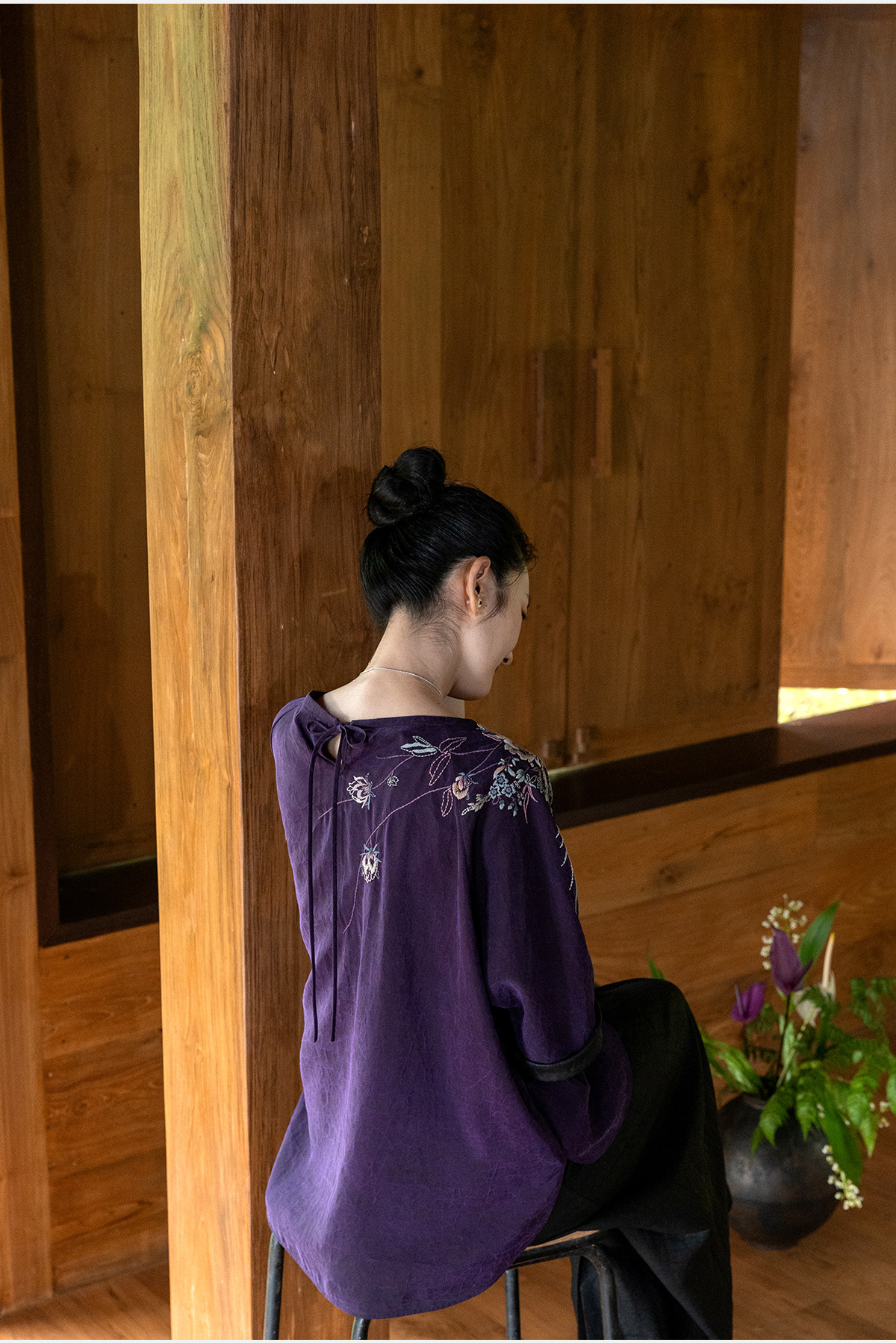 牧衣游原创 22姆米重磅重工手绣龟裂纹香云纱小衫禅意复古 花沁
