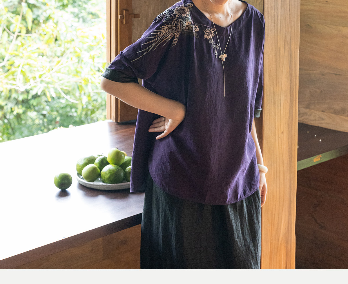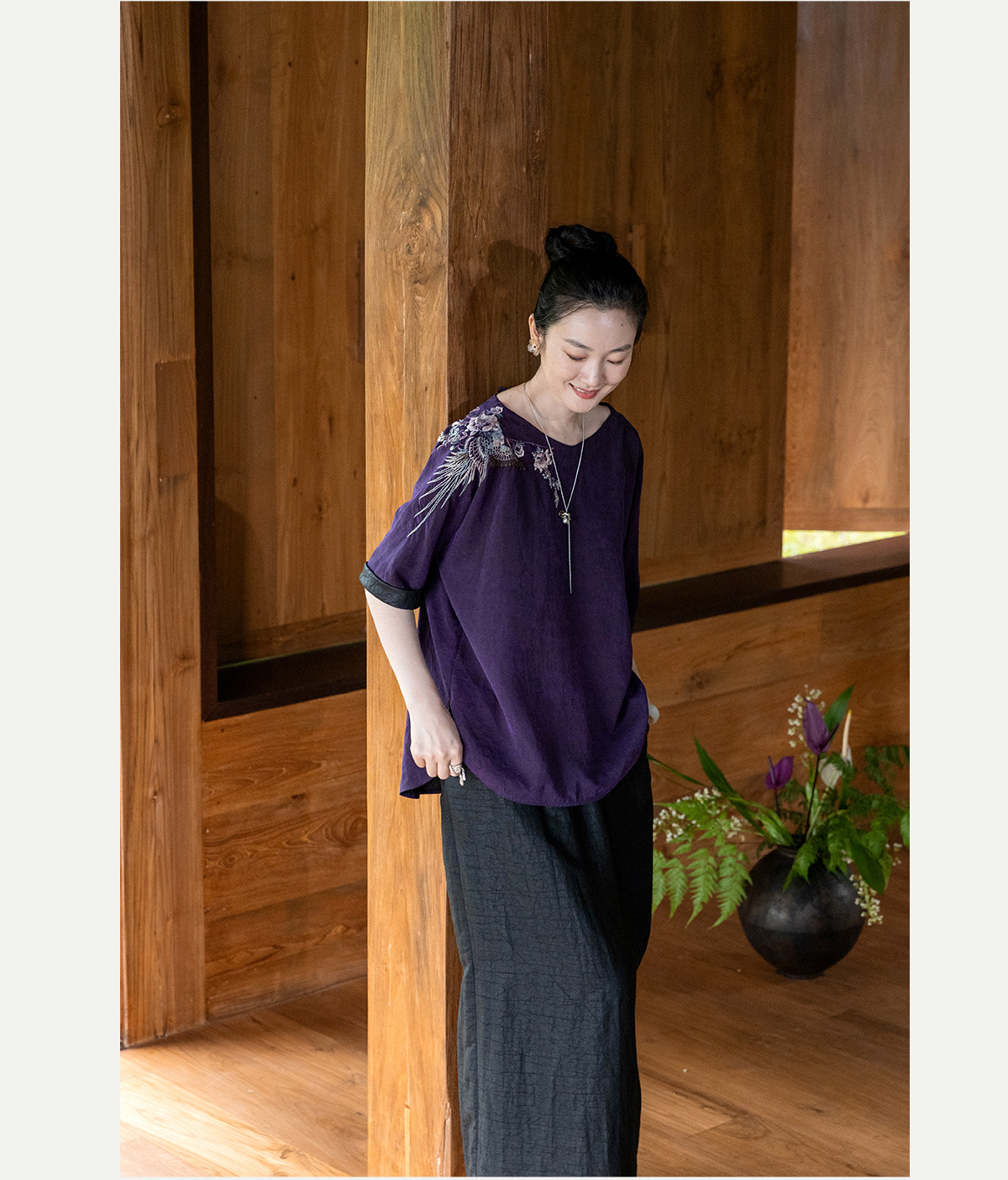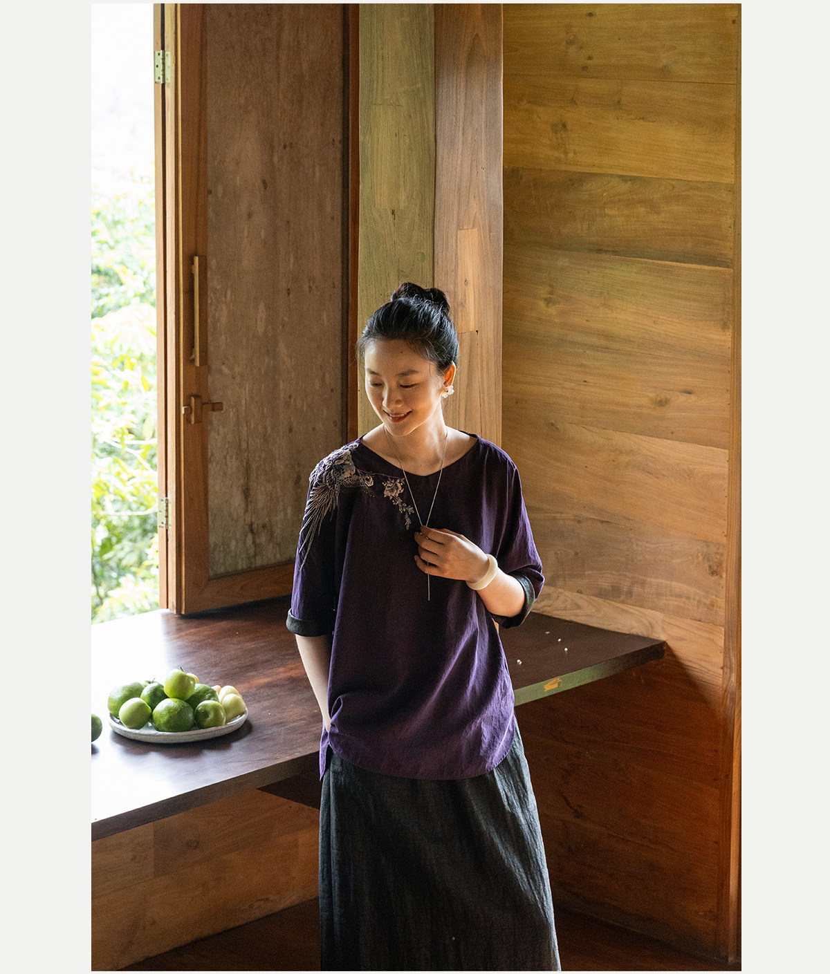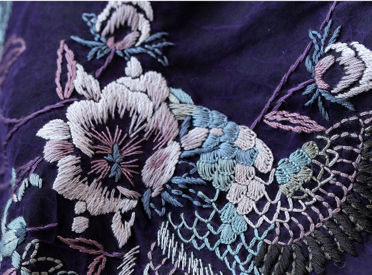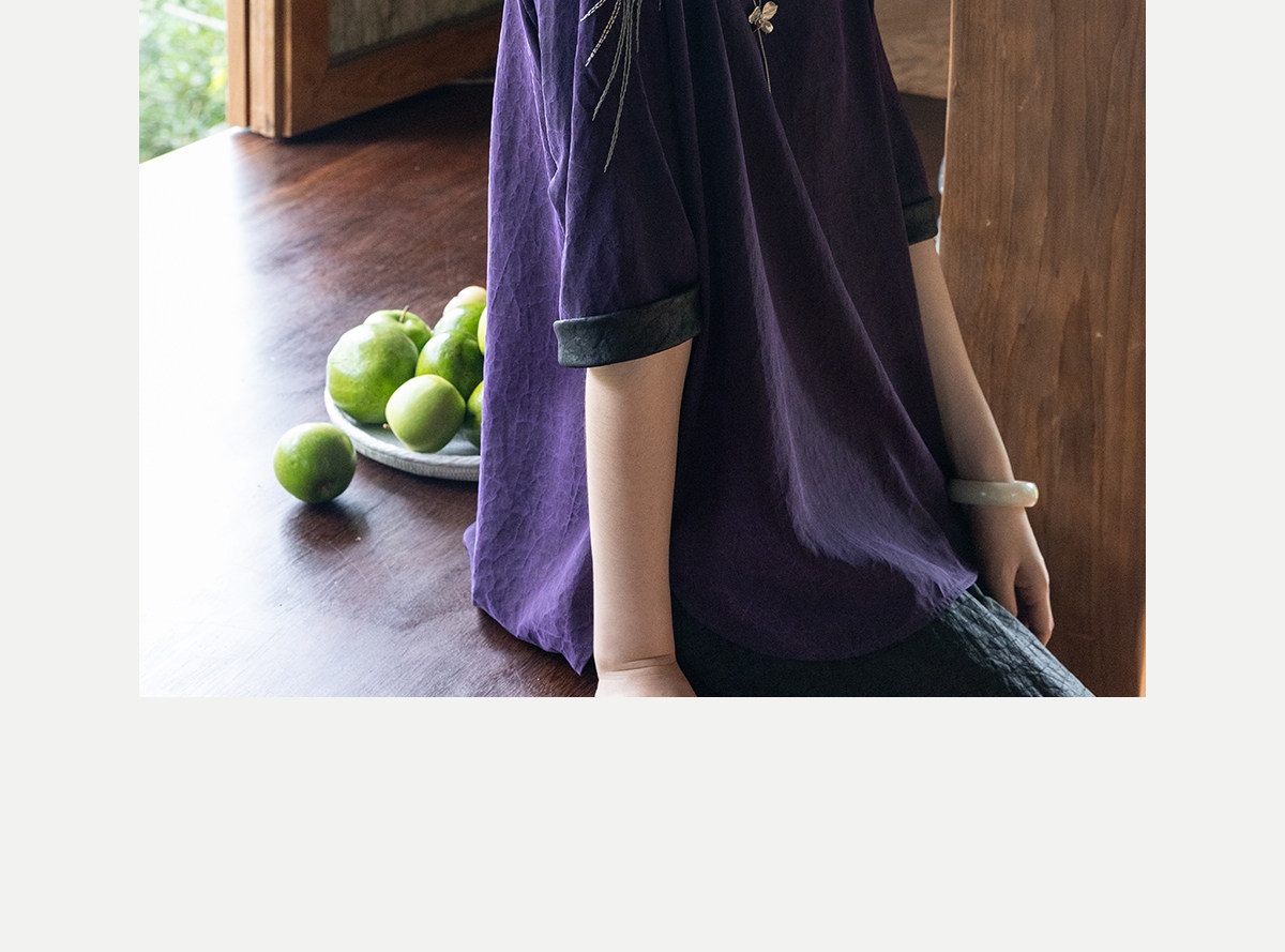 牧衣游原创 22姆米重磅重工手绣龟裂纹香云纱小衫禅意复古 花沁