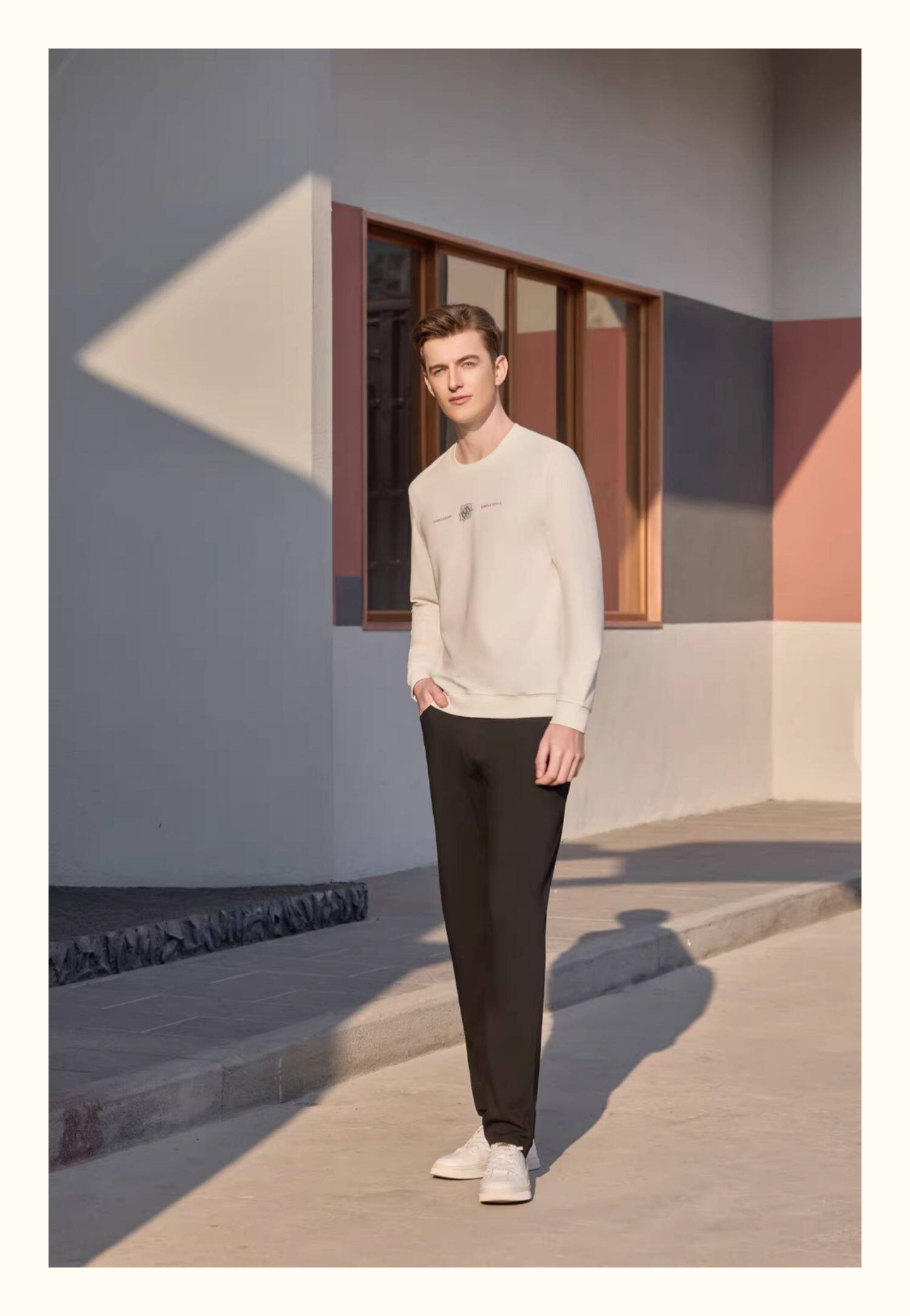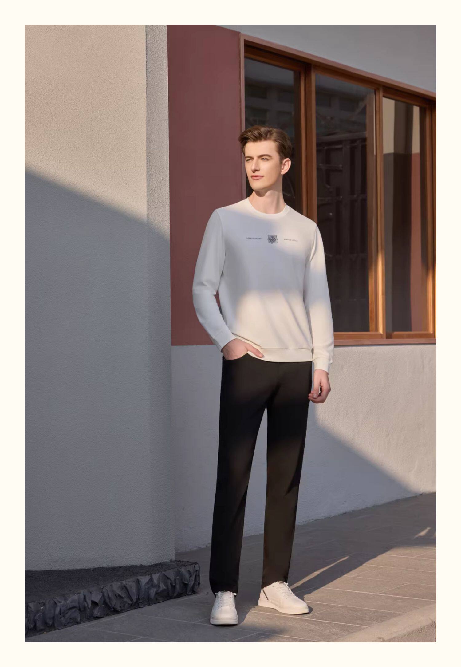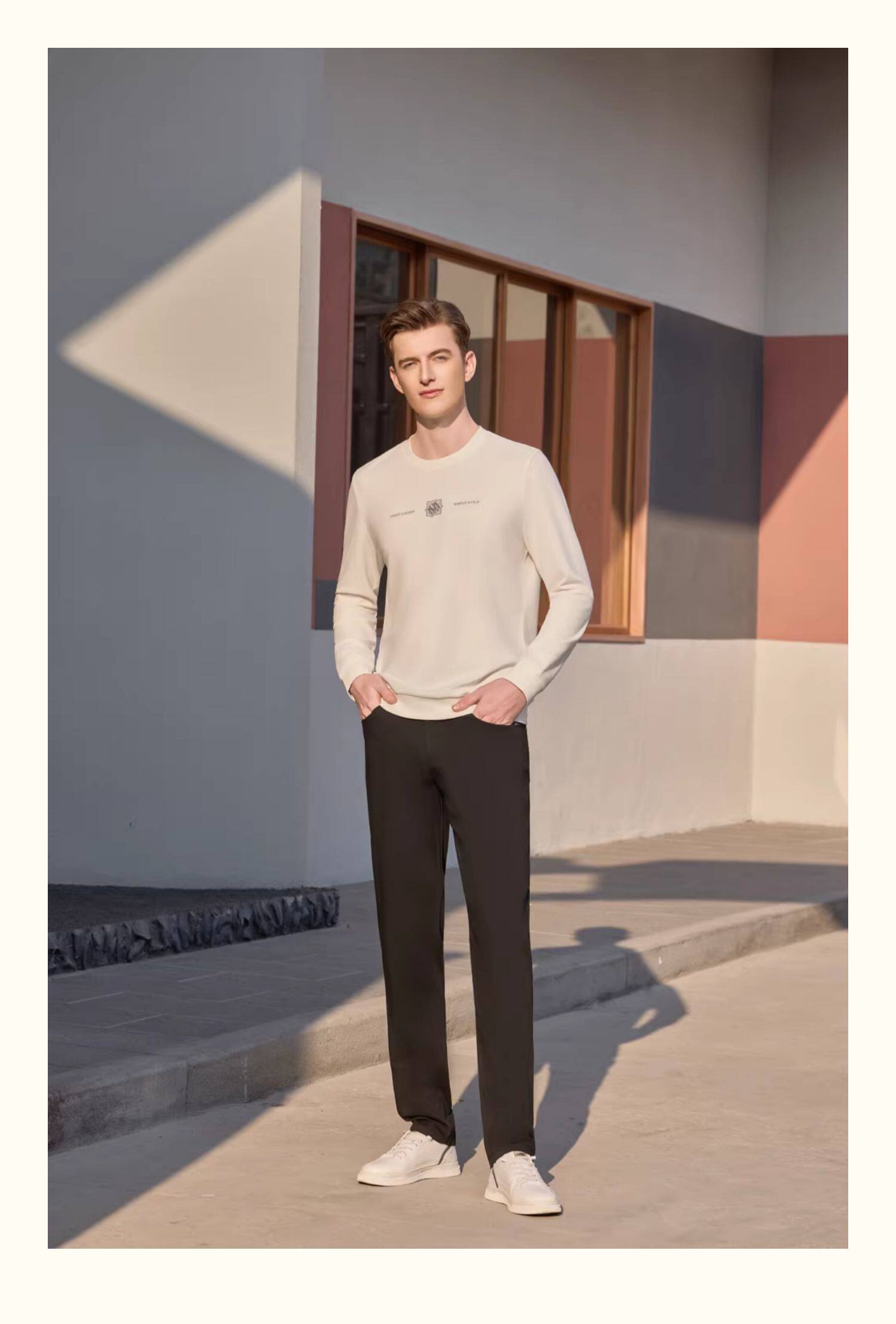 半身缘男裤 秋季松紧腰弹力免烫宽松直筒商务休闲裤339