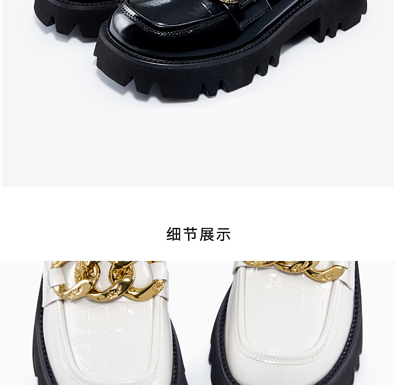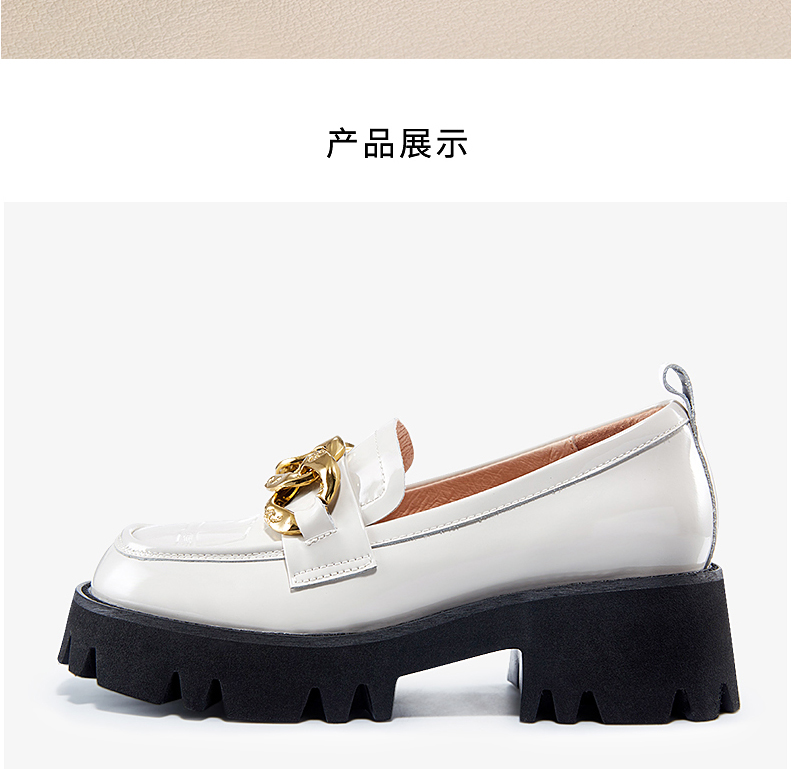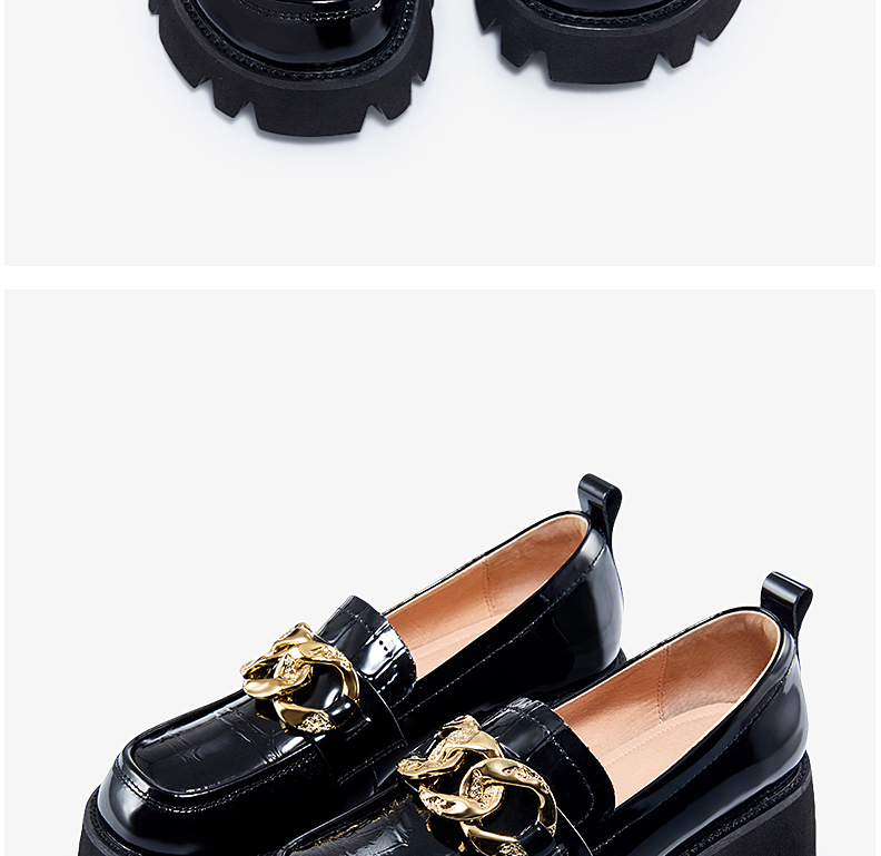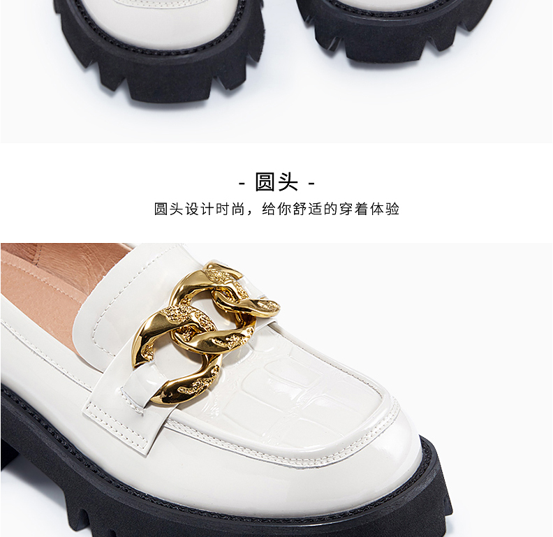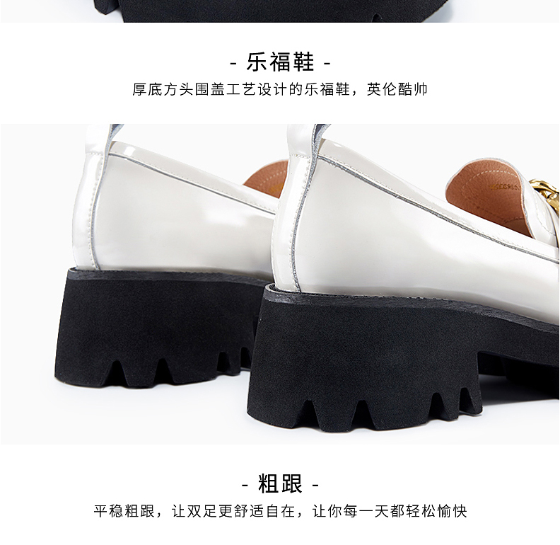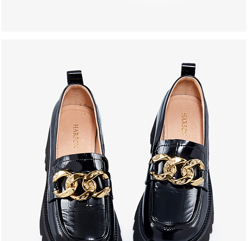 哈森女鞋2022春季新款休闲粗跟圆头乐福鞋简约饰扣深口女单鞋HS220601