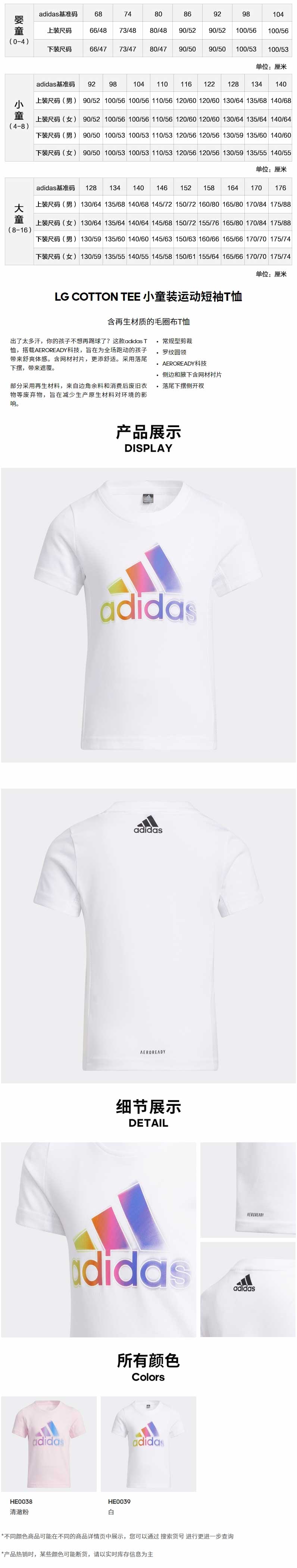 小阿迪2022年夏季新款儿童休闲运动短袖T恤HE0039/0038