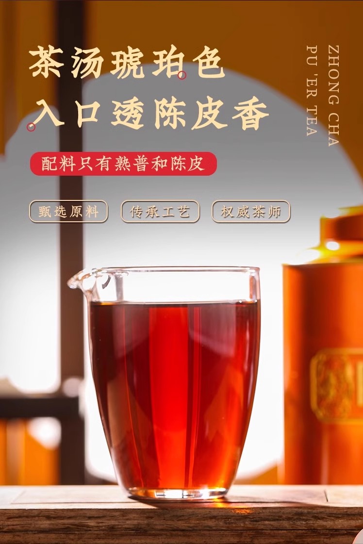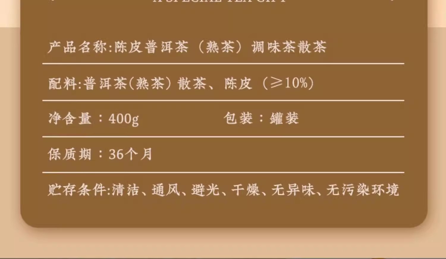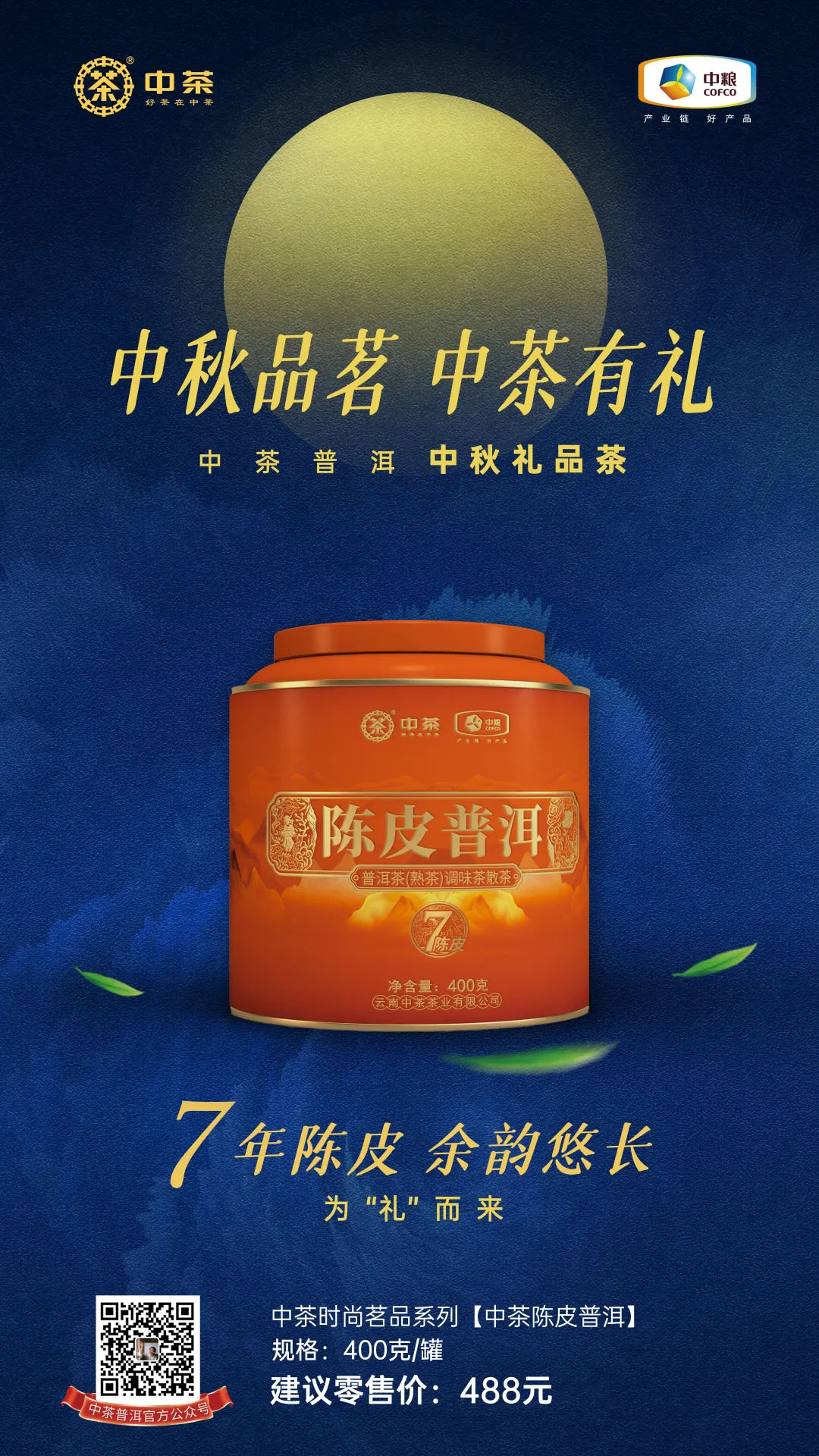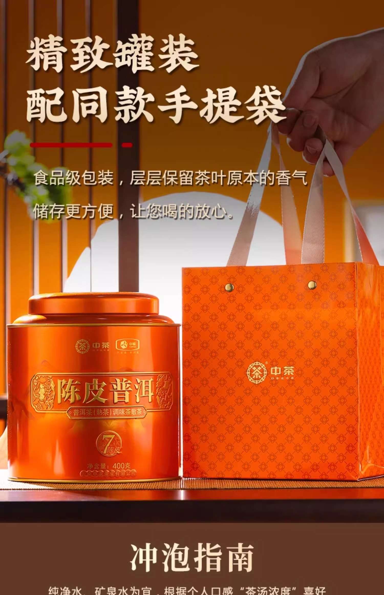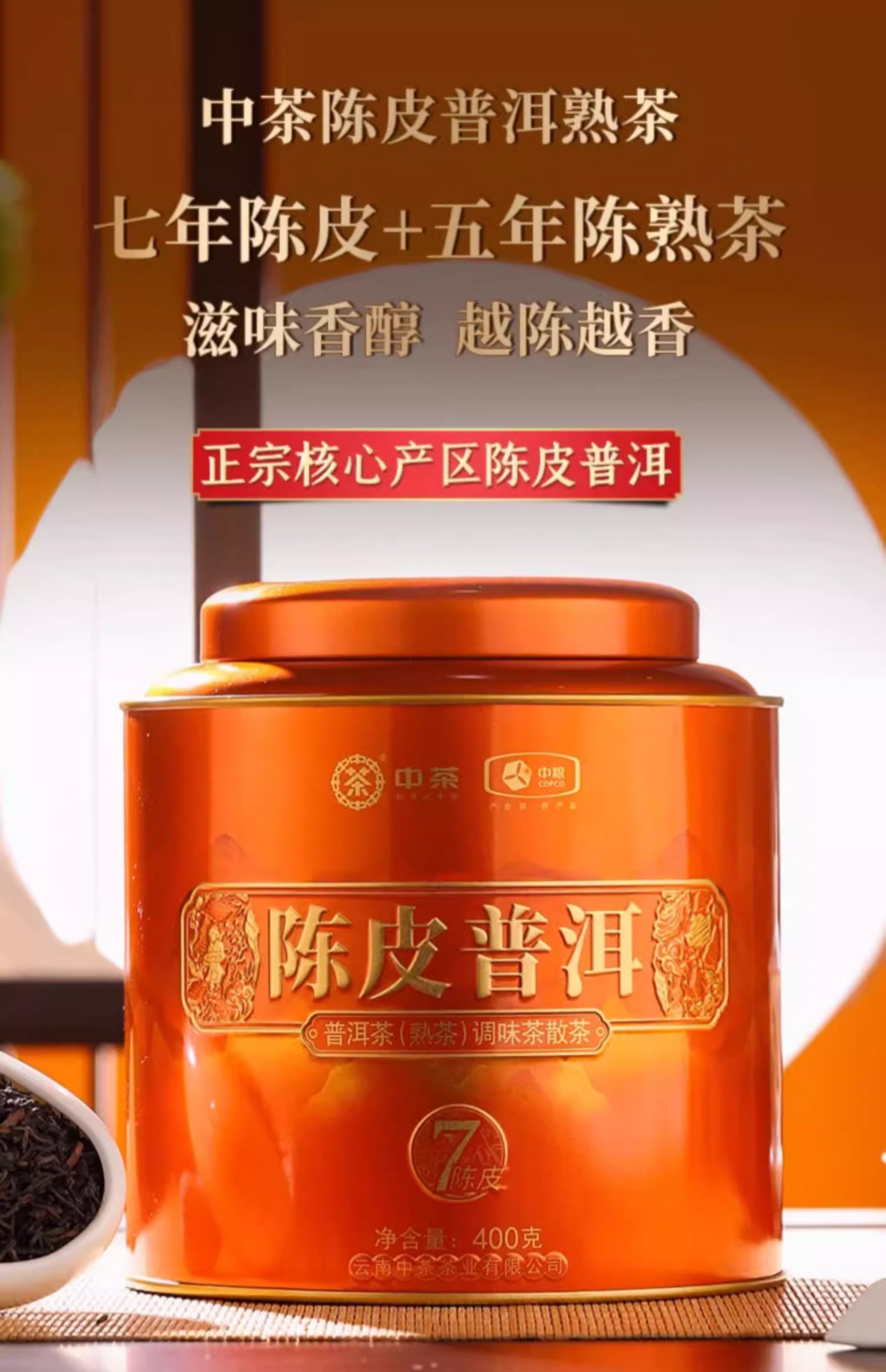 中茶中粮2022年中茶陈皮普洱茶熟茶散茶七年陈料400克罐装送礼茶