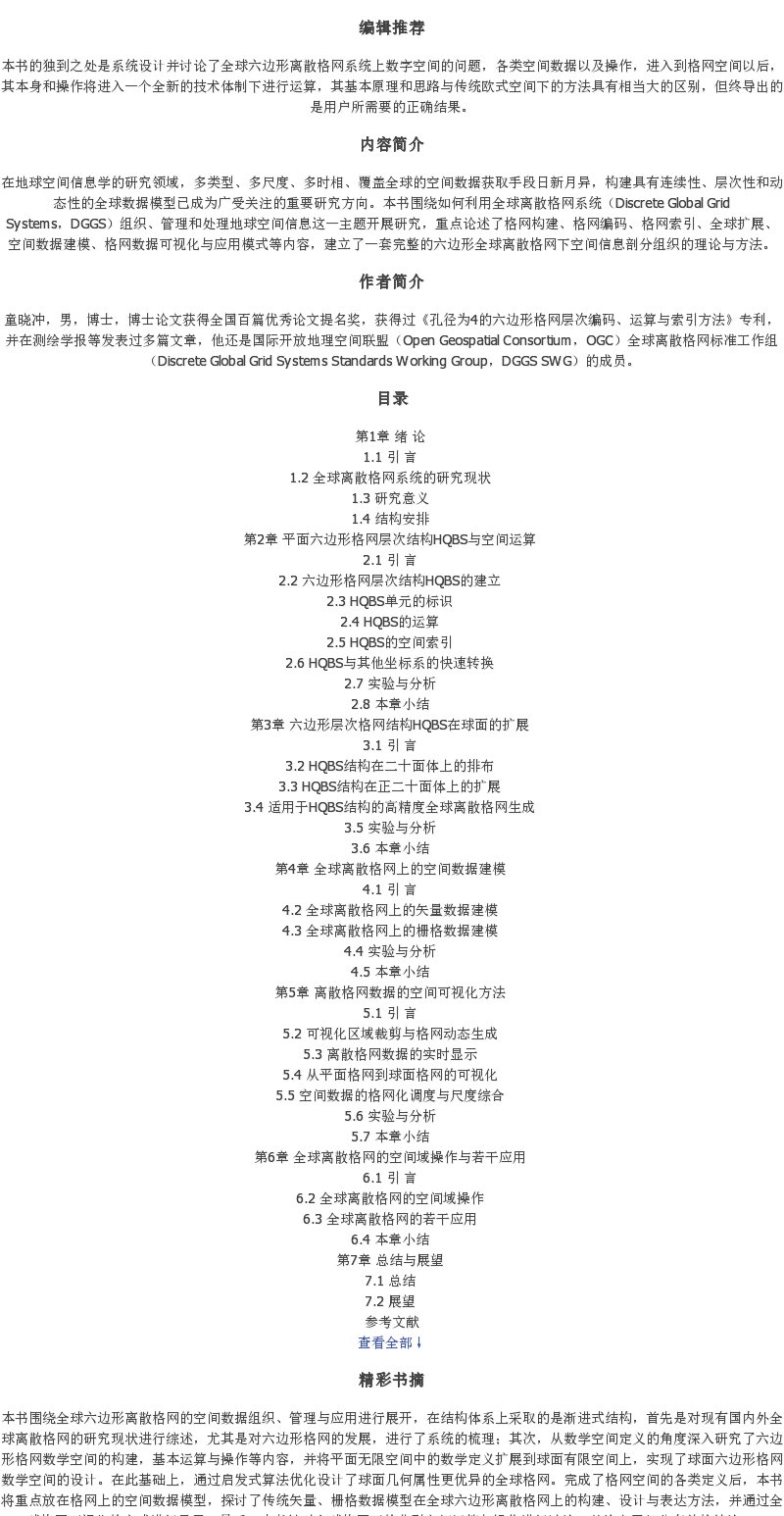 《空间信息部分组织的全球离散格网理论与方法》(童晓冲,贲进)