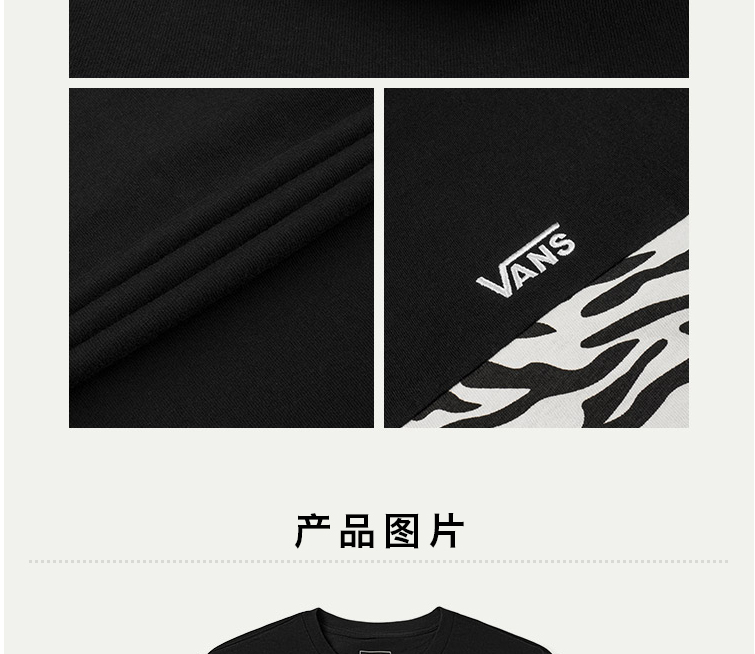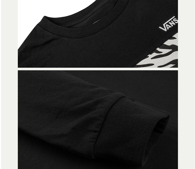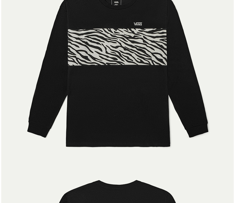 VANS黑色斑马纹印花男女情侣长袖T恤VN0A7TOFBLK