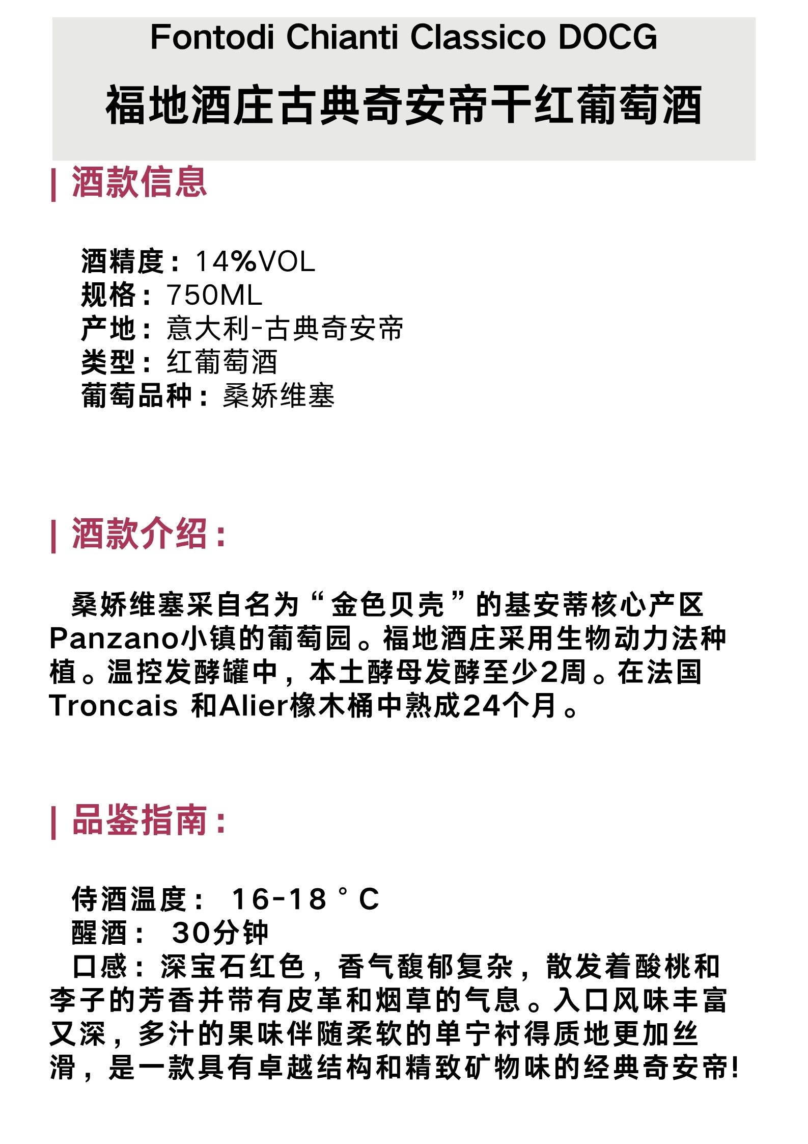 福地酒庄古典奇安帝⼲红葡萄酒 Fontodi Chianti Classico DOCG