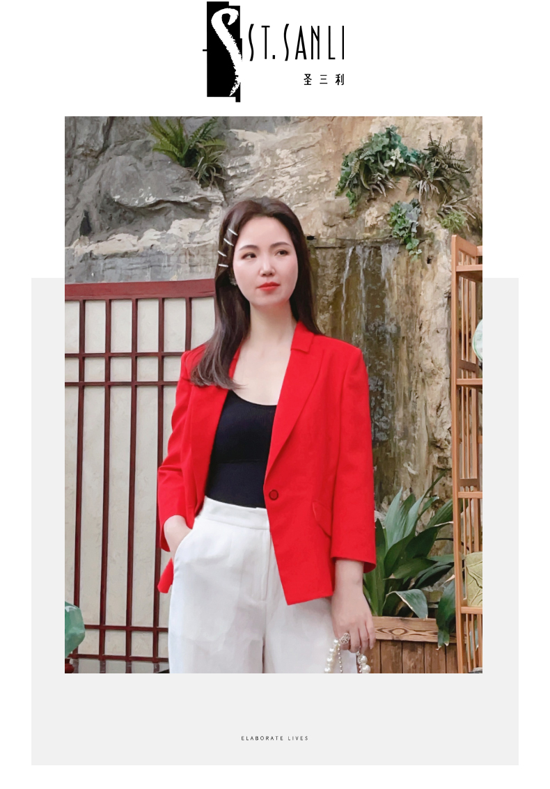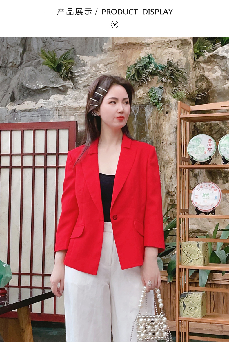 圣三利女装 新款翻领环保仿亚麻纯色休闲西服外套SL2012130