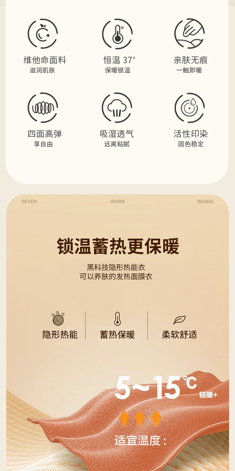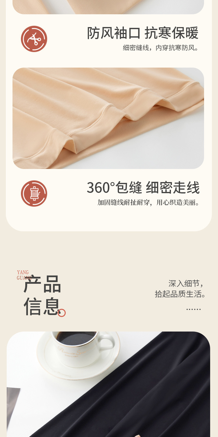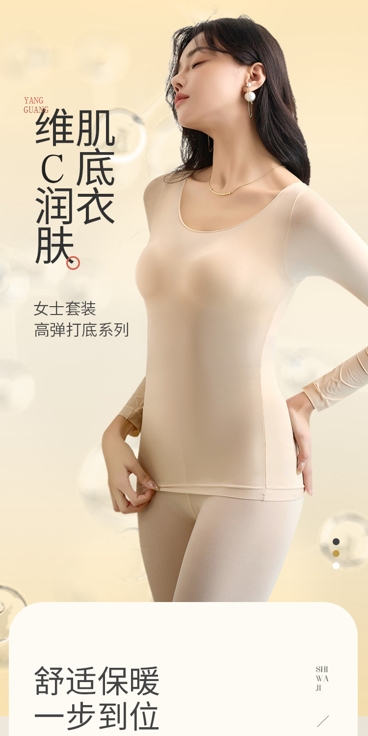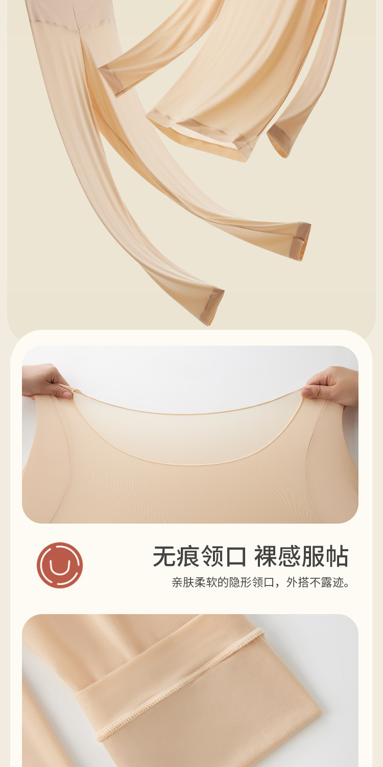 【秋冬必备,保暖恒温!】质地轻盈透薄,宛如第二层肌肤。圆领设计优雅迷人,不挑身材,wan美贴合身形。玻尿酸美肤衣内含珍贵成分,为您打造水嫩光滑肌肤。隐形套装设计,贴身舒适,毫无束缚感!