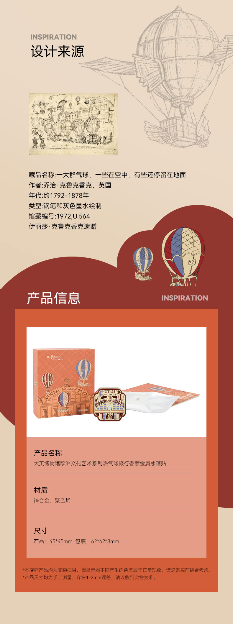 大英博物馆 欧洲文化艺术系列 热气球 旅行香薰 金属 冰箱贴