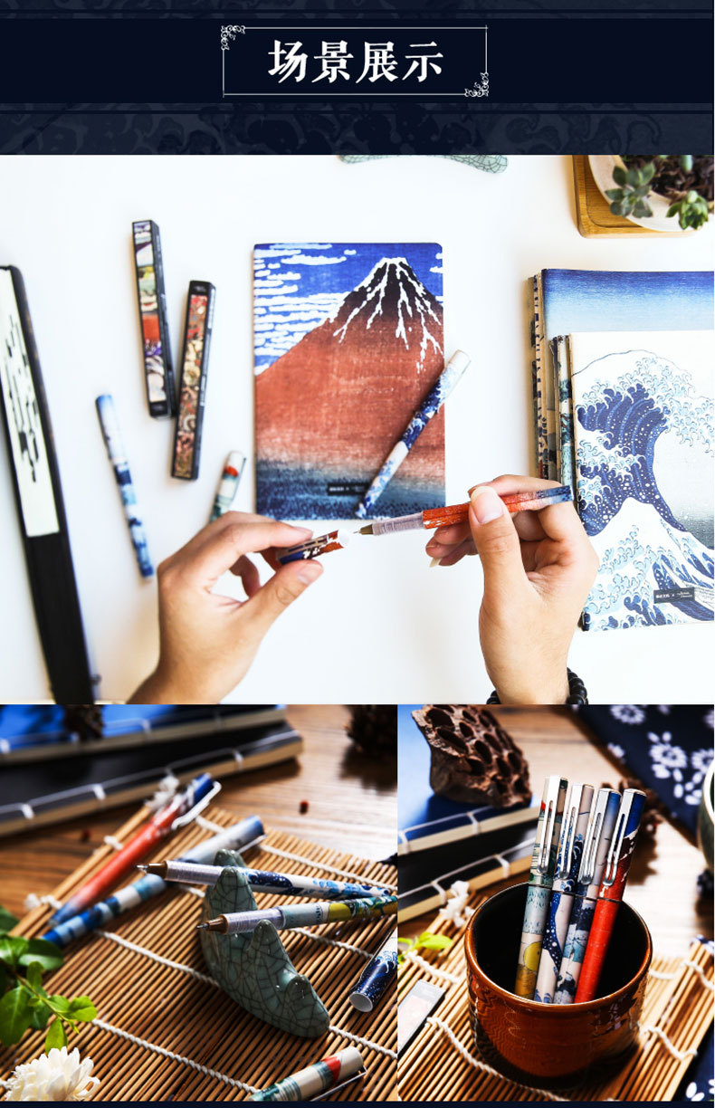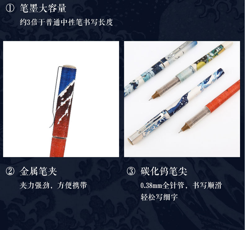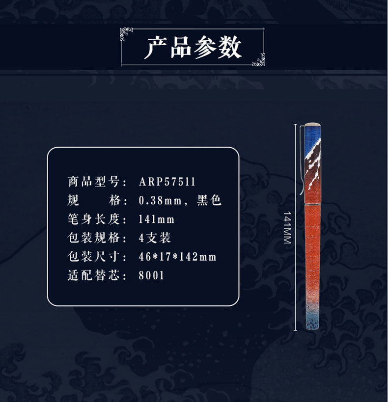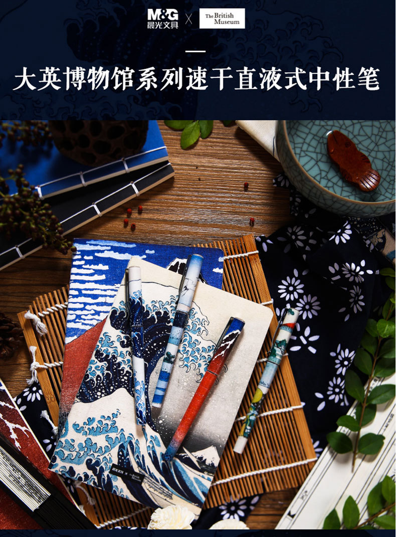 【4支】晨光ARP57511大英博物馆北斋速干水性签字笔 直液式 学生中性笔0.38