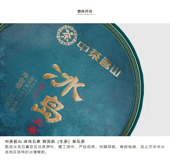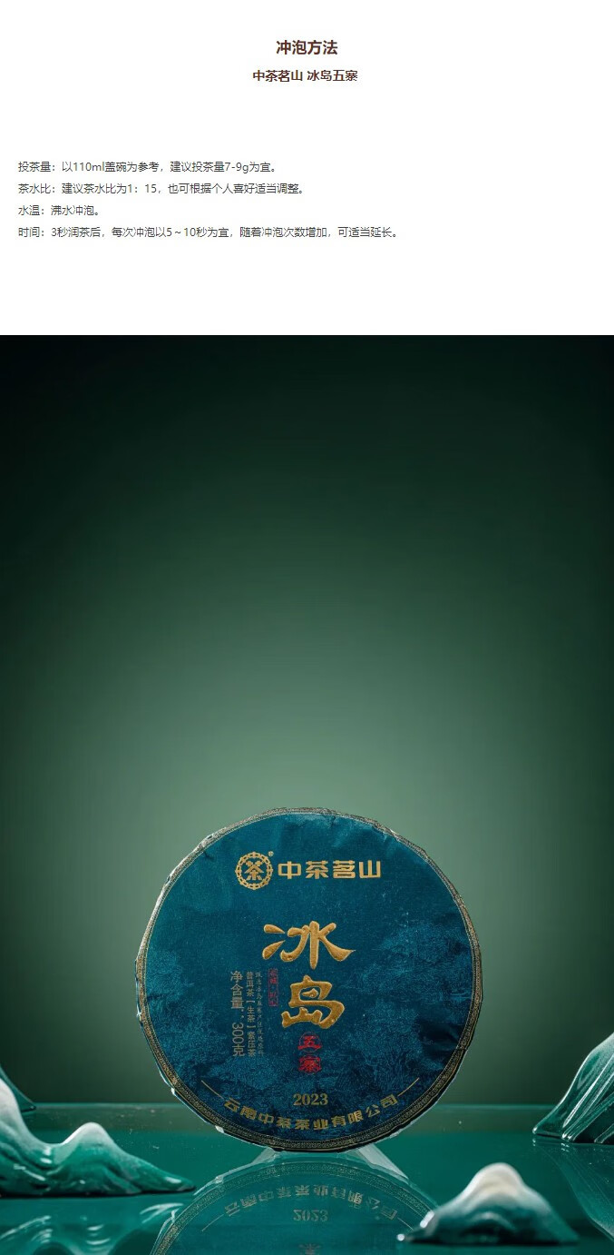 中粮中茶 2023年茗山冰岛五寨普洱茶生茶饼300克/饼/云南干仓直发