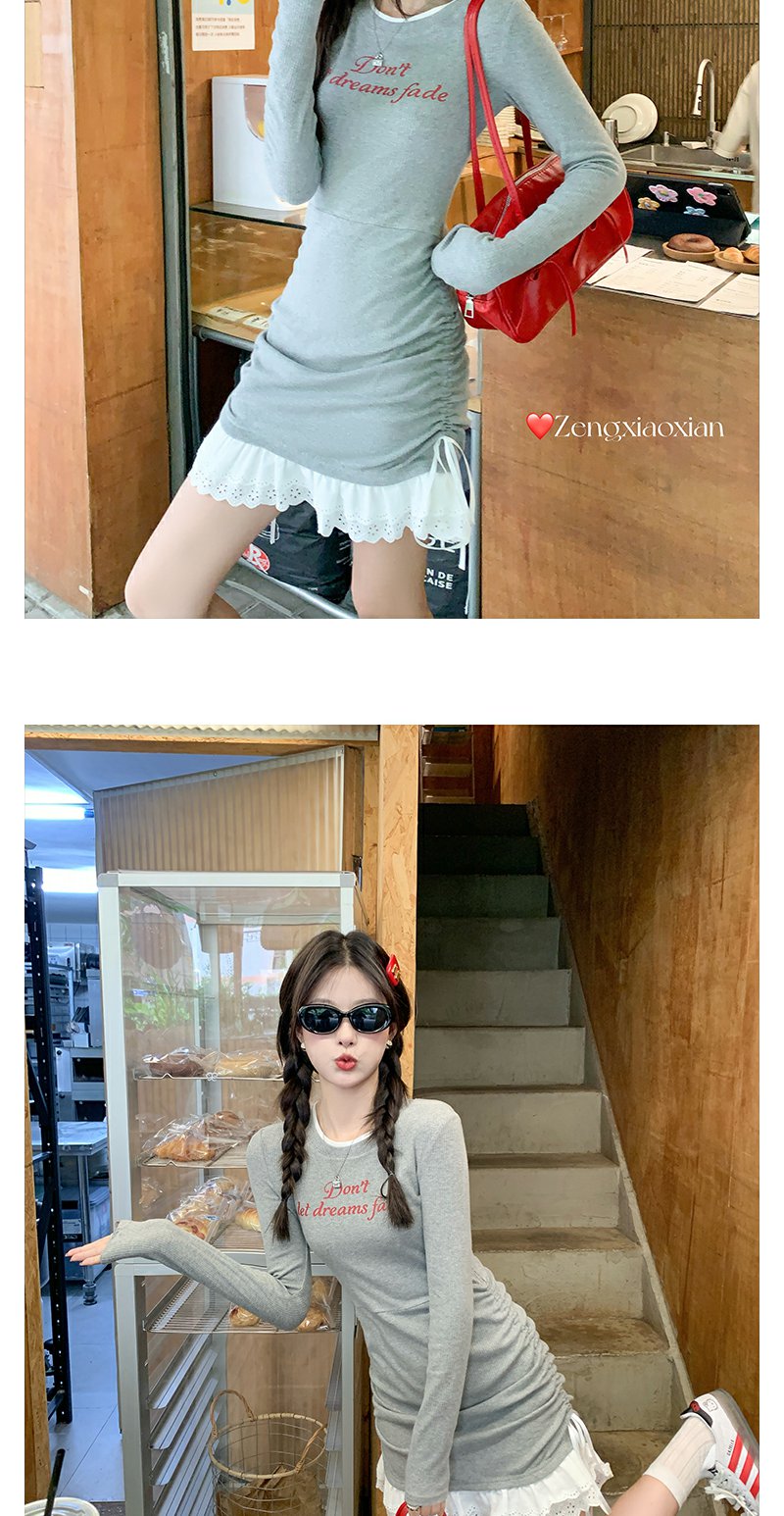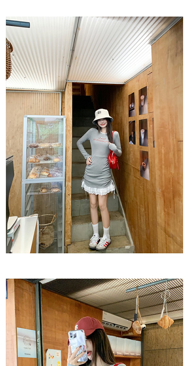 【169元任选2件】现货!灰色侧边抽绳连衣短裙