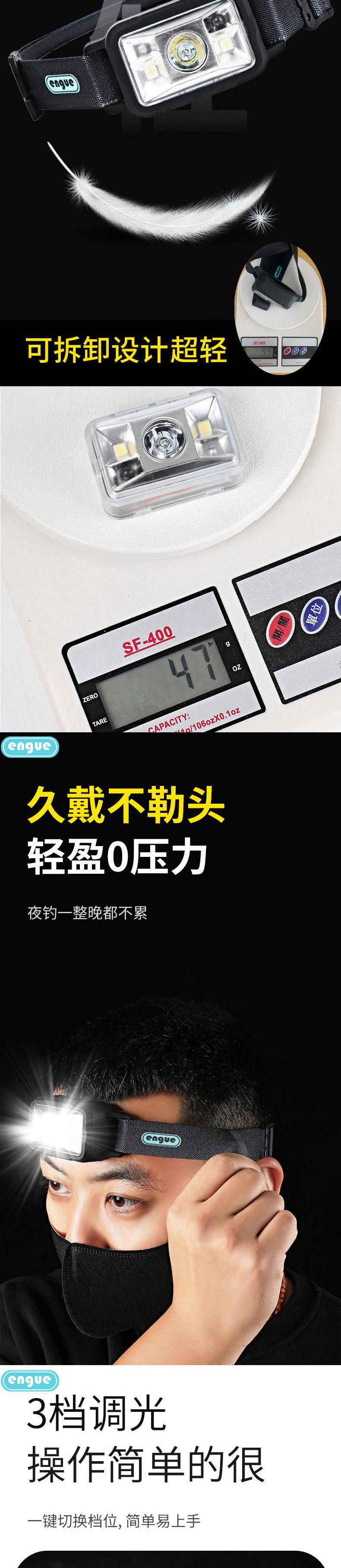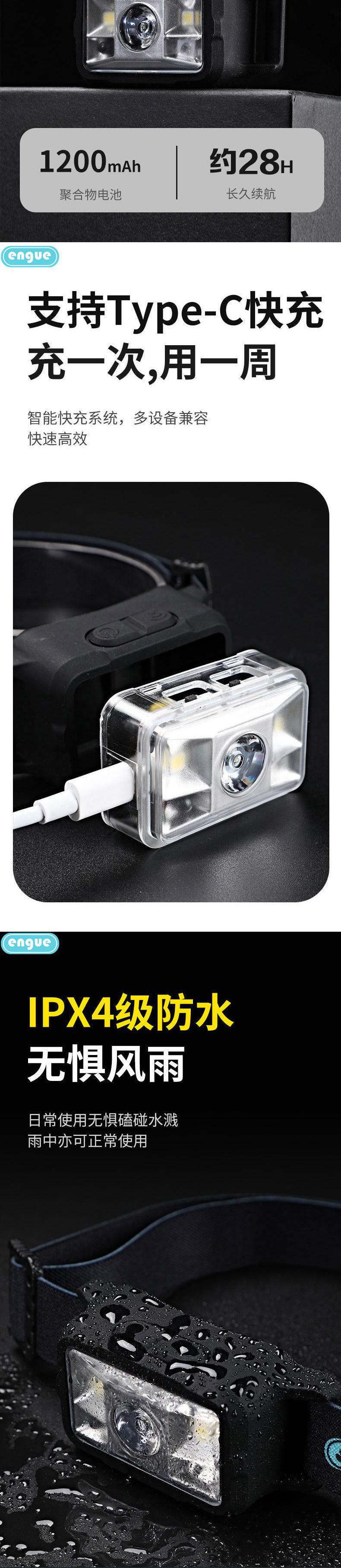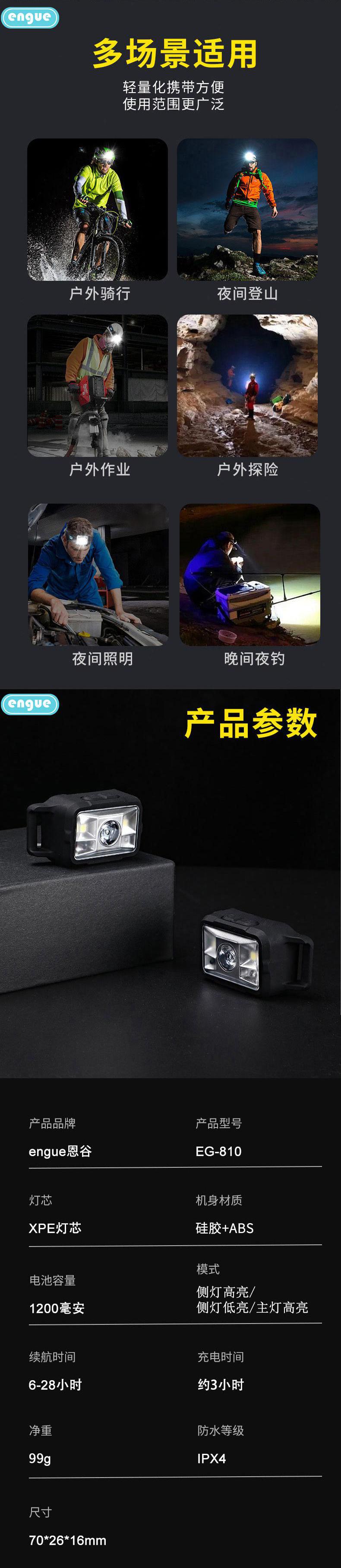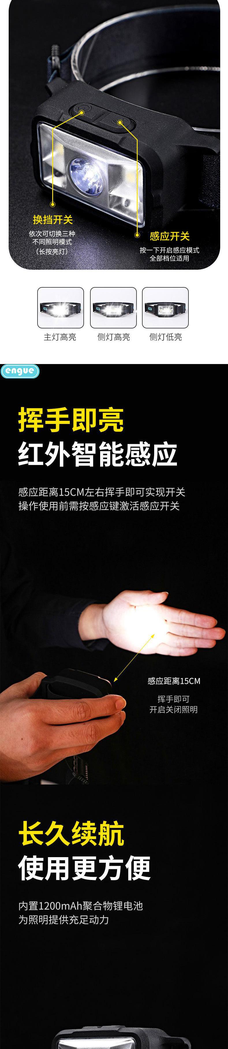 engue恩谷硅胶感应头灯(充电款)EG-810挥手感应强光轻便夜钓维修