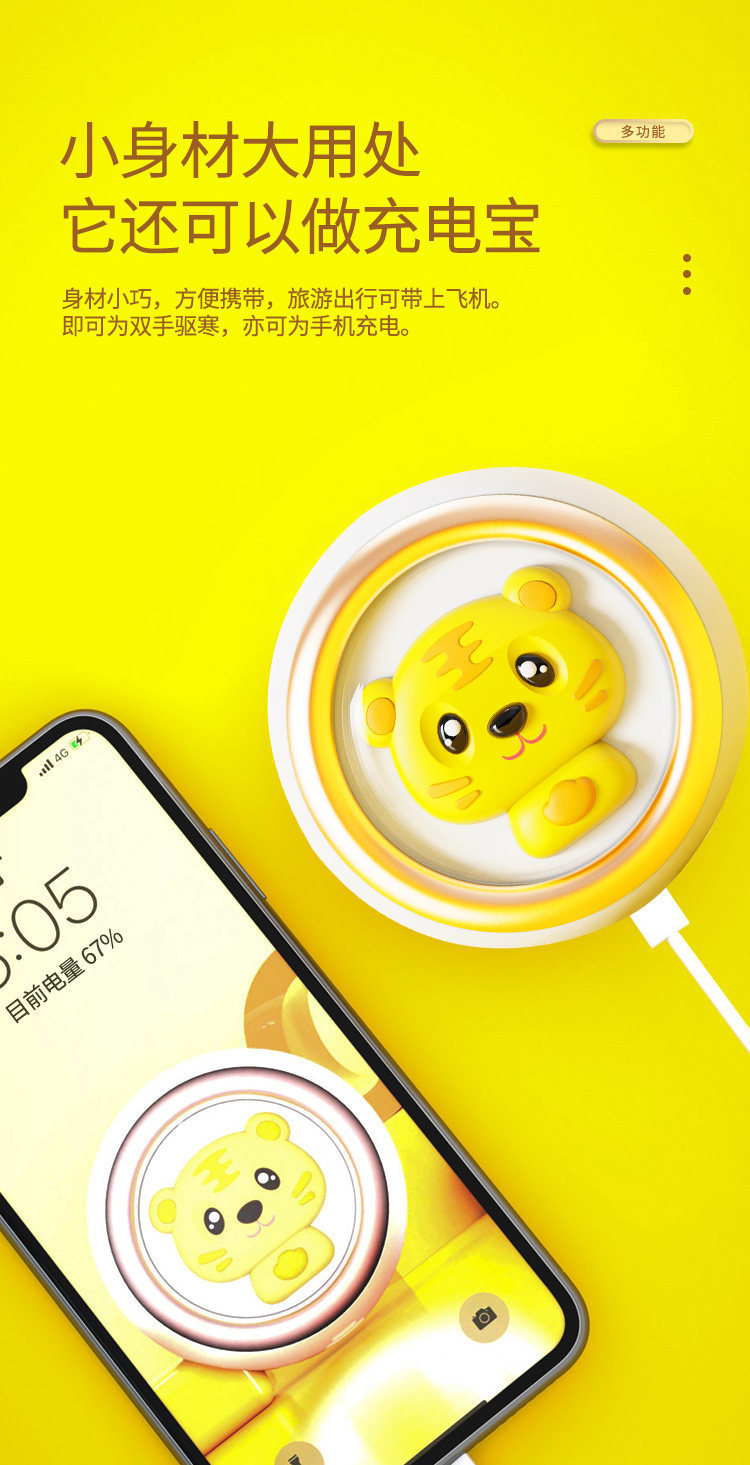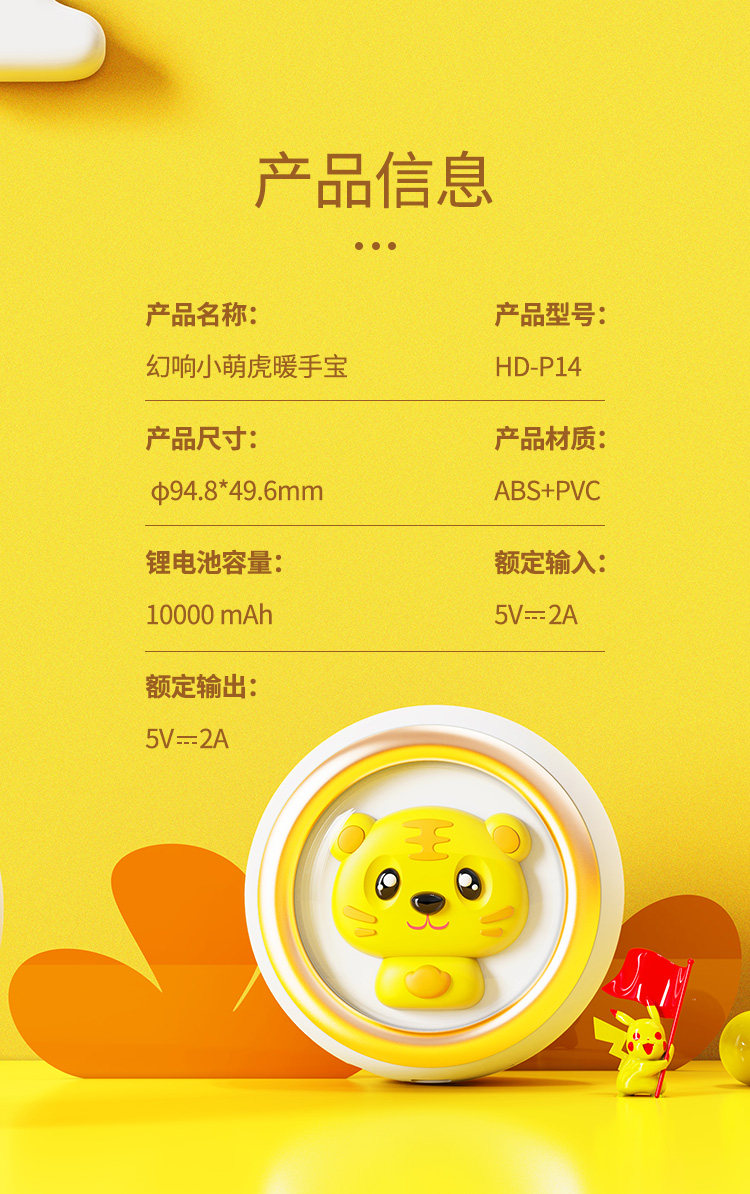 幻响 HD-P14 小萌虎暖手宝 二合一移动电源10000毫安