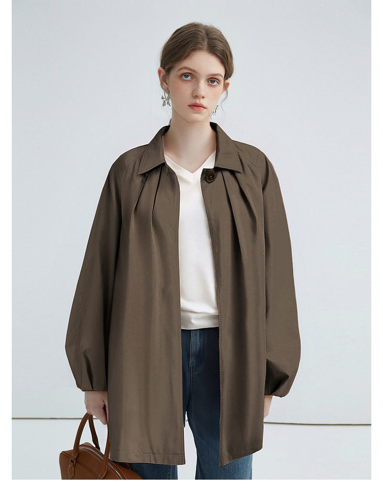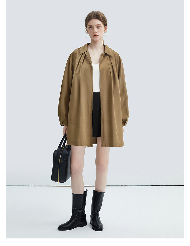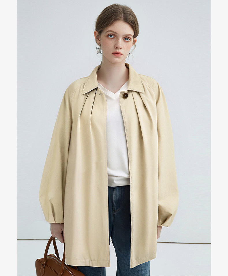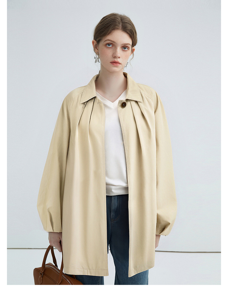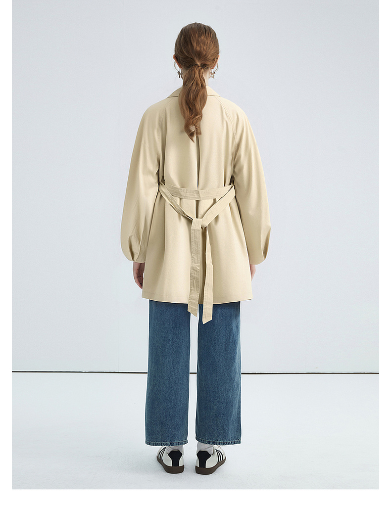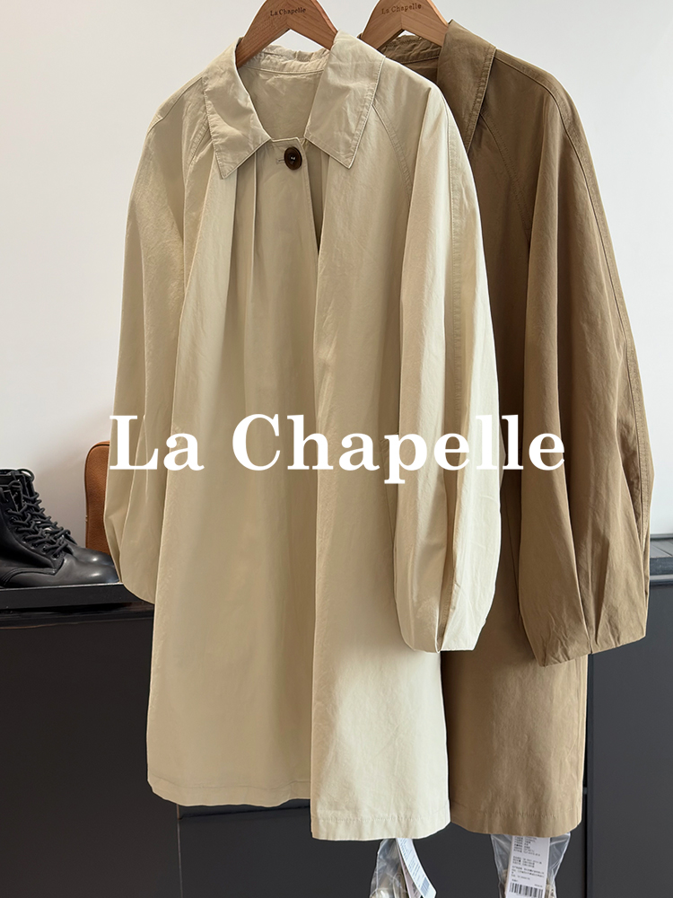 拉夏贝尔/La Chapelle简约气质纯棉风衣外套中长款英伦风别致时尚上衣