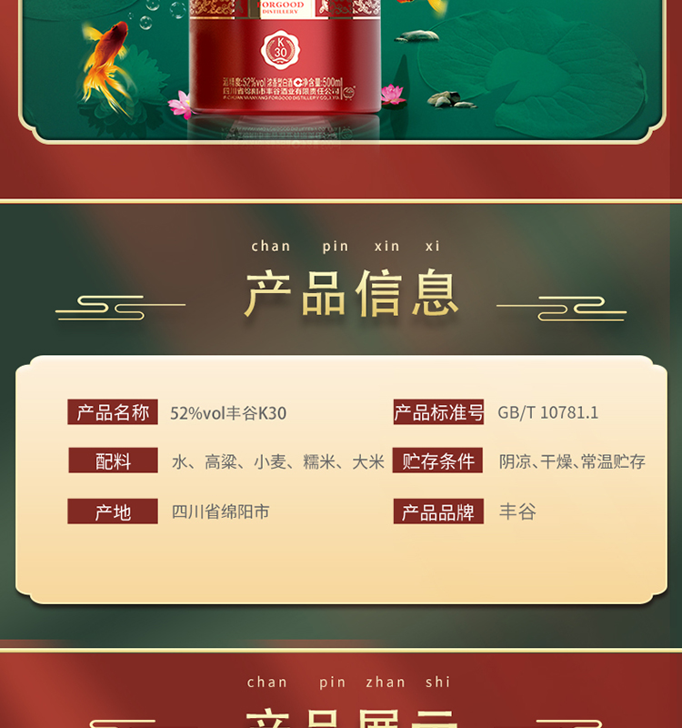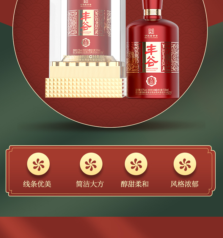 丰谷k30浓香型白酒52度500ml*1瓶(买1送1)