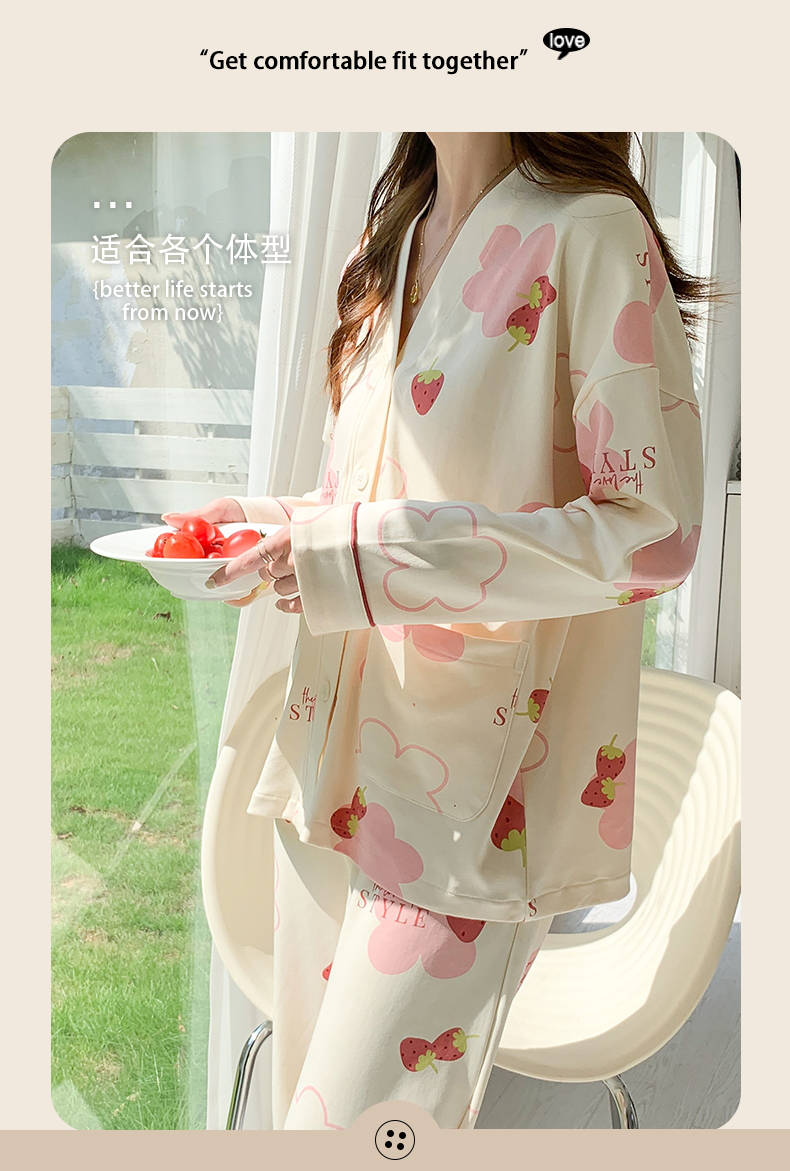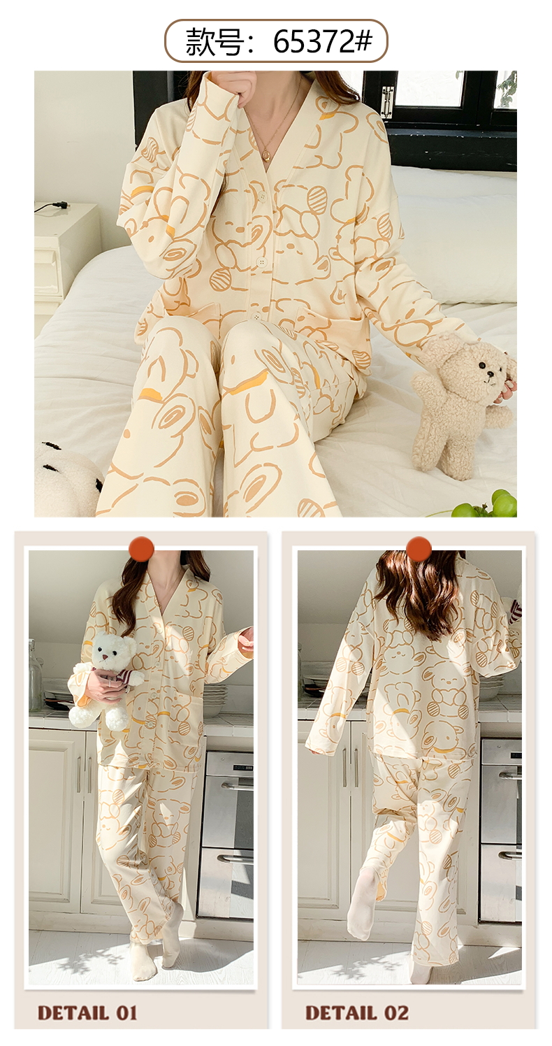 自然醒绮梦牛奶丝新款春秋季天女士睡衣可爱长袖两件套网红风大码家居服QH