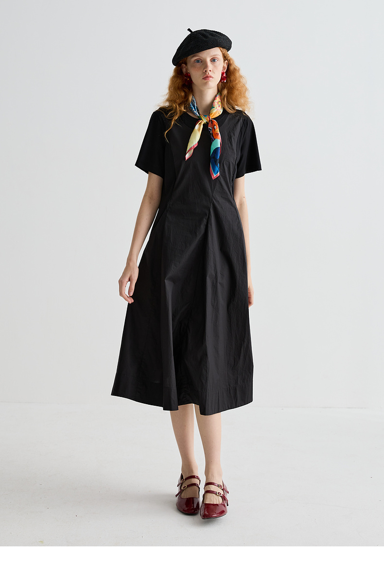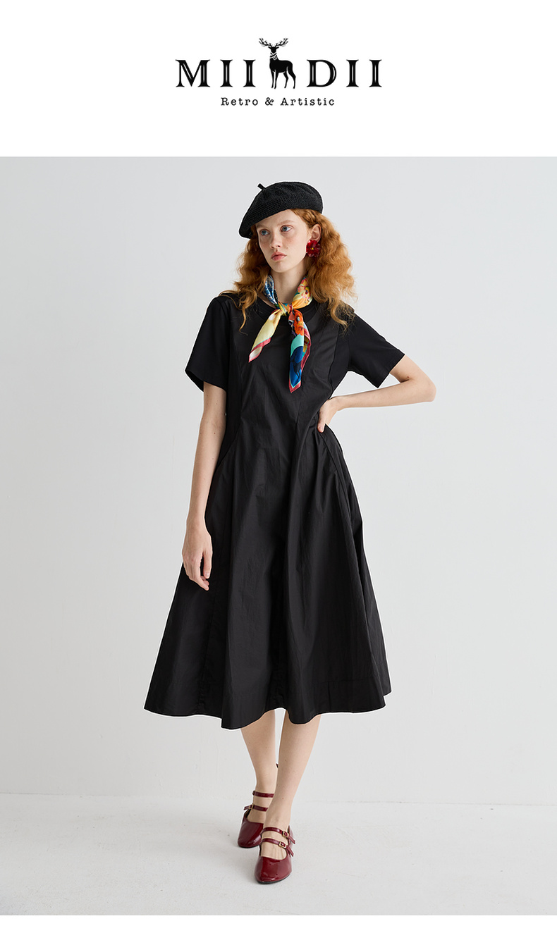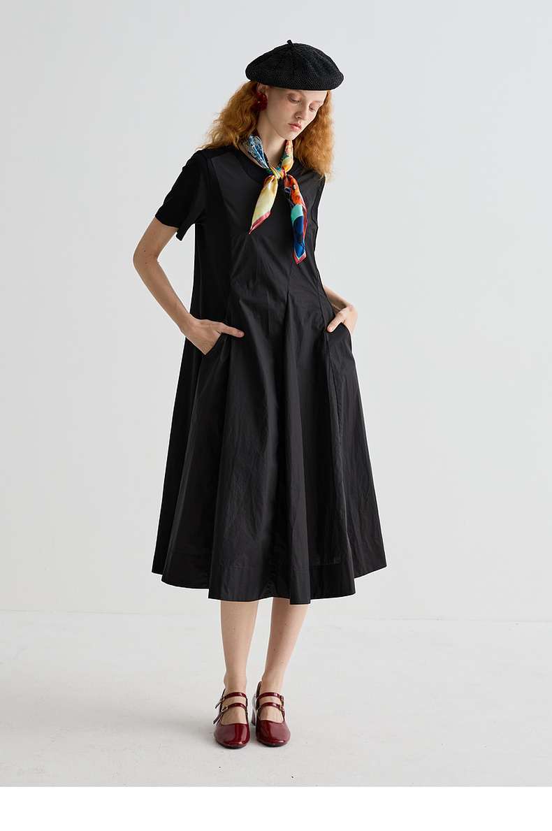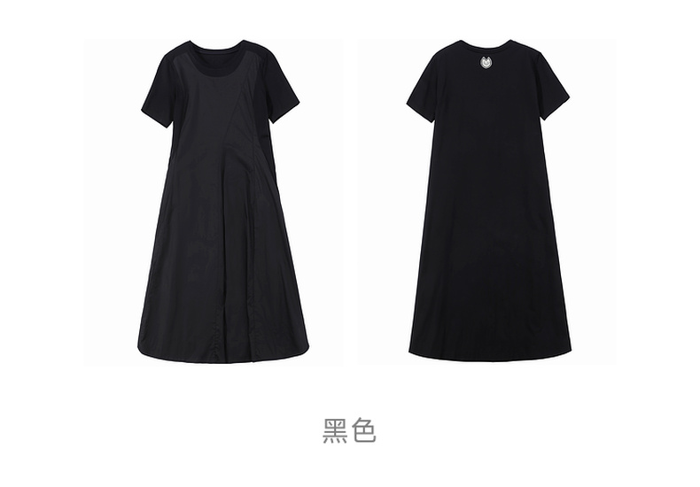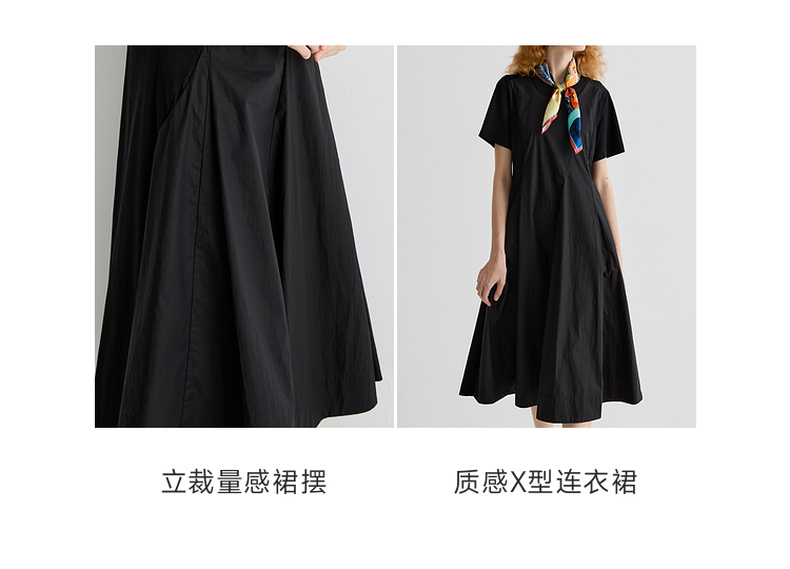 谜底连衣裙短袖女2025夏季新品通勤拼接层次感X型长裙252ML0657