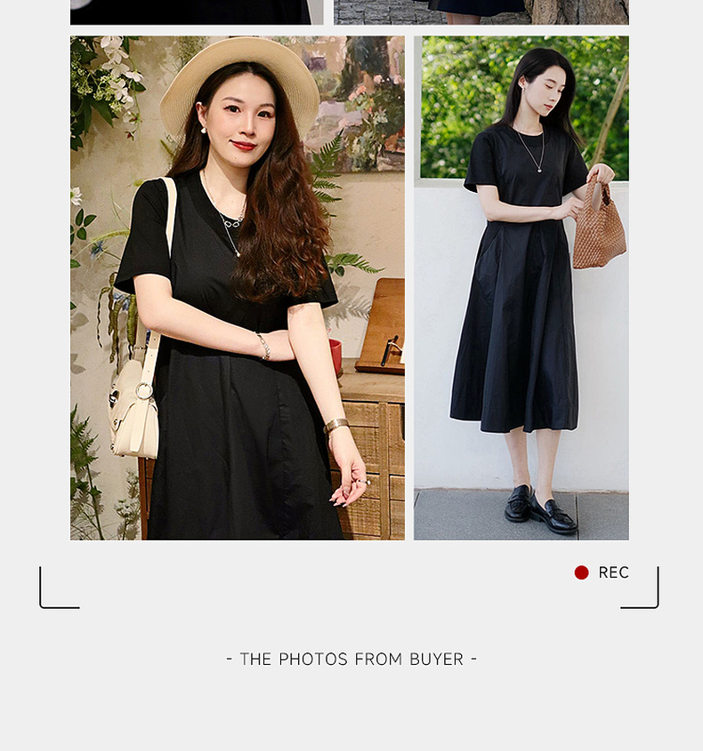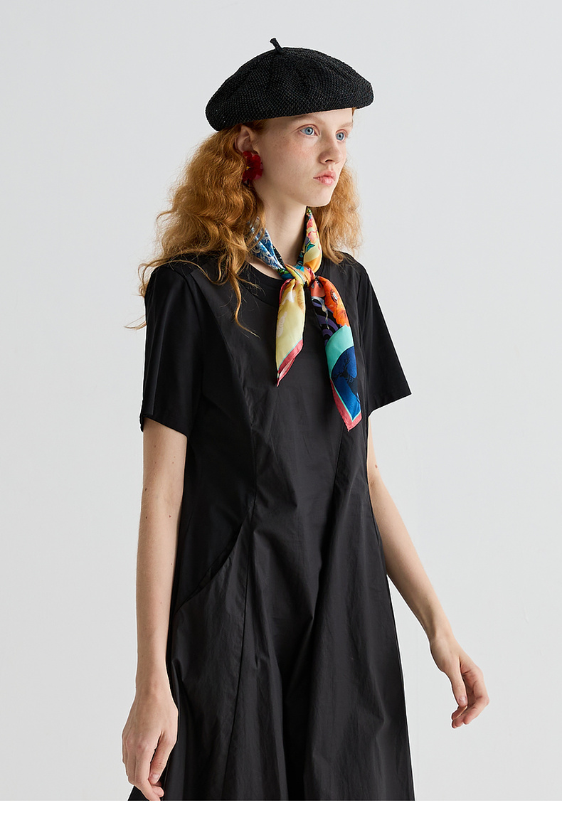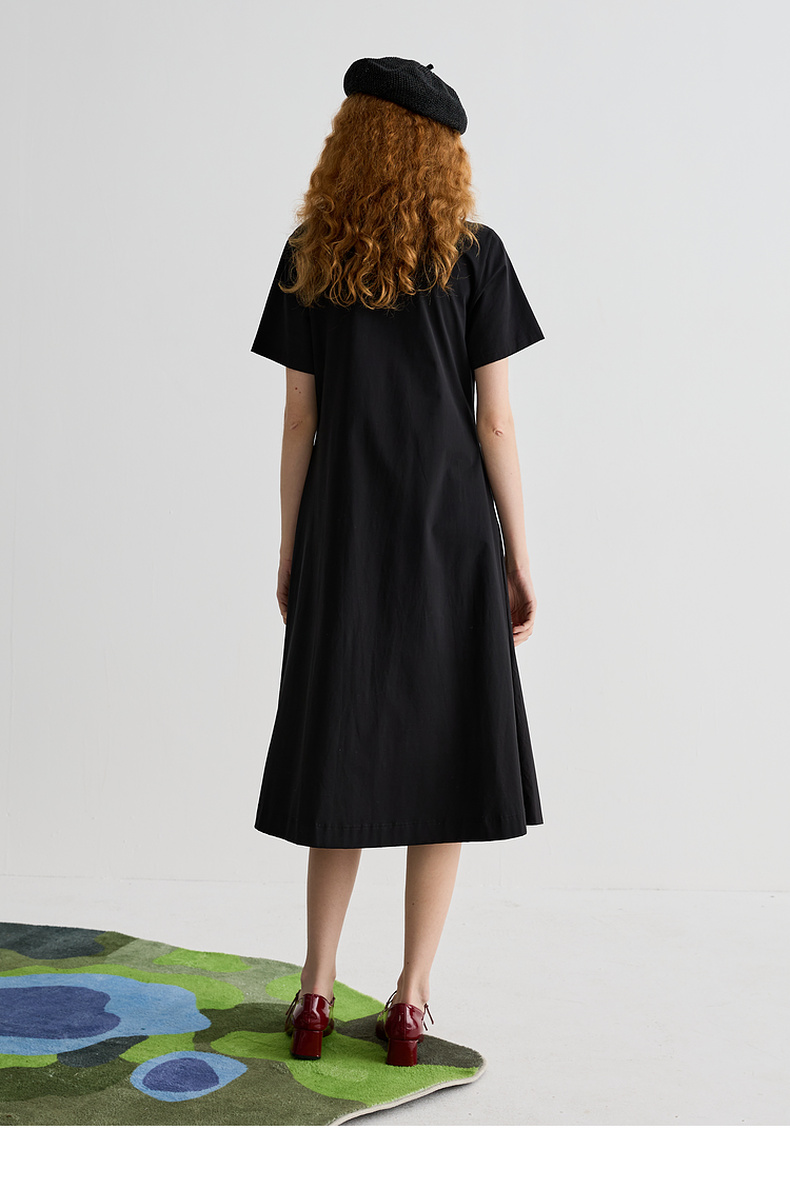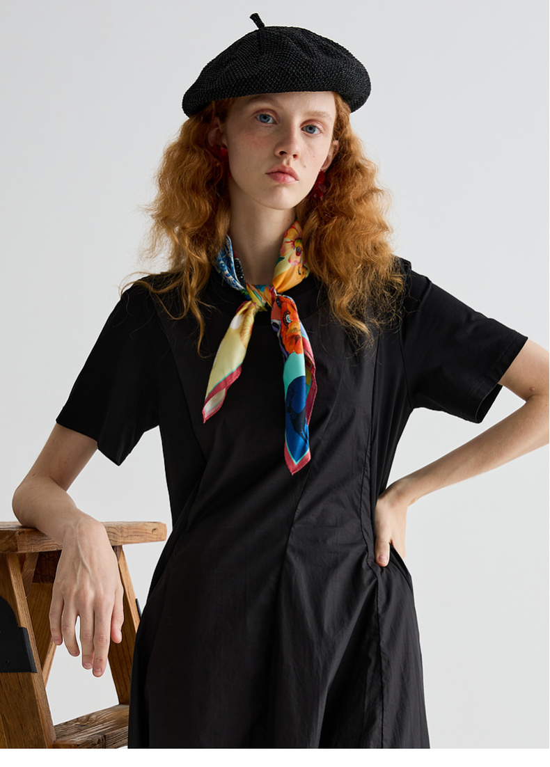 谜底连衣裙短袖女2025夏季新品通勤拼接层次感X型长裙252ML0657