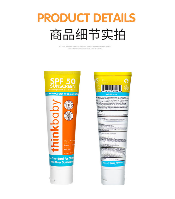 【Thinkbaby】宝宝防晒霜 保湿防水SPF50