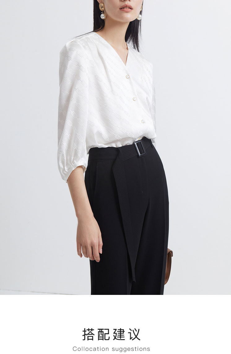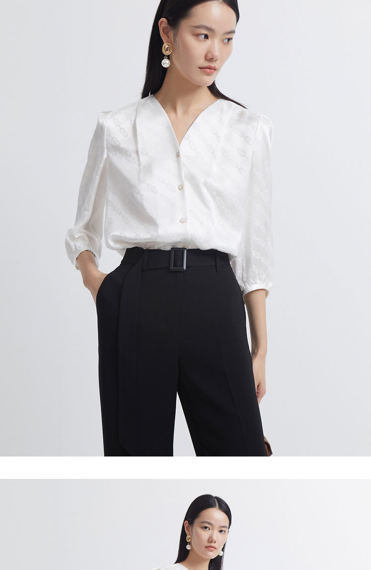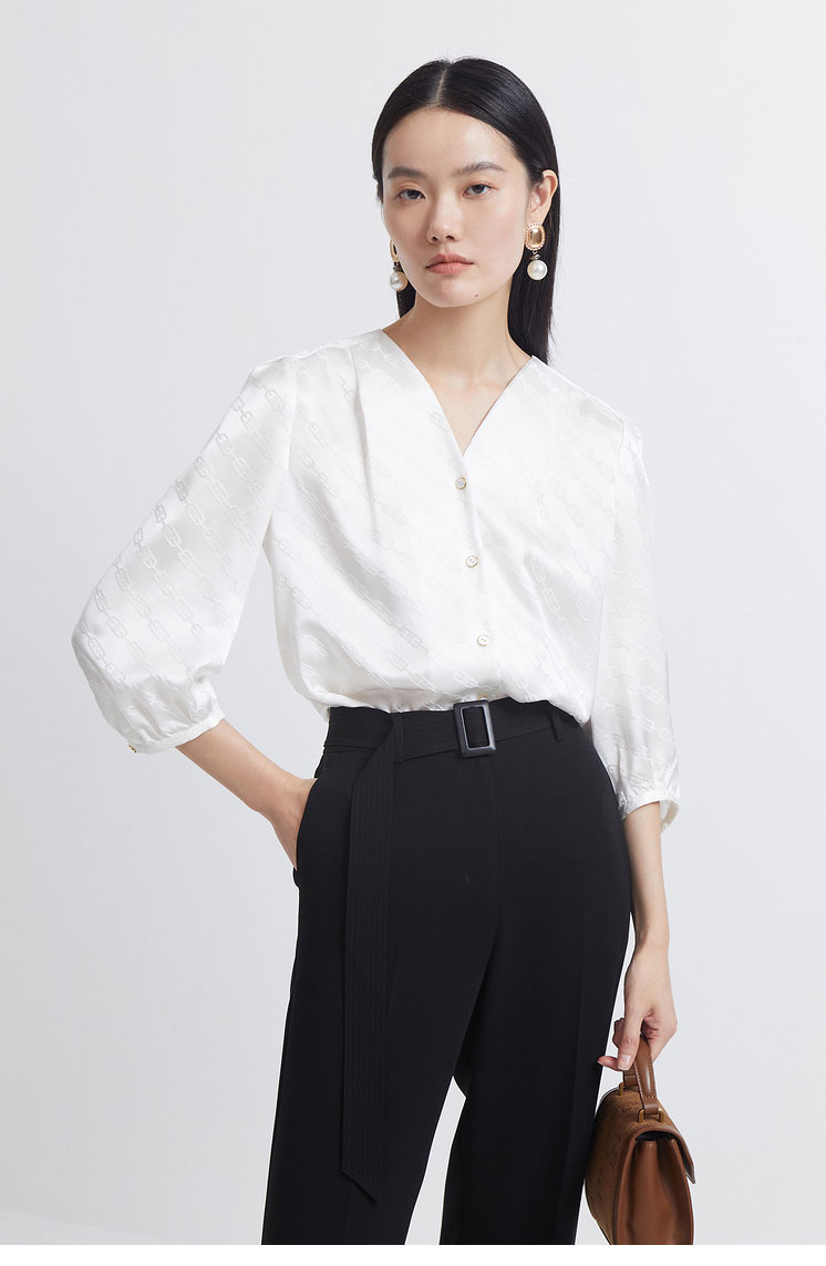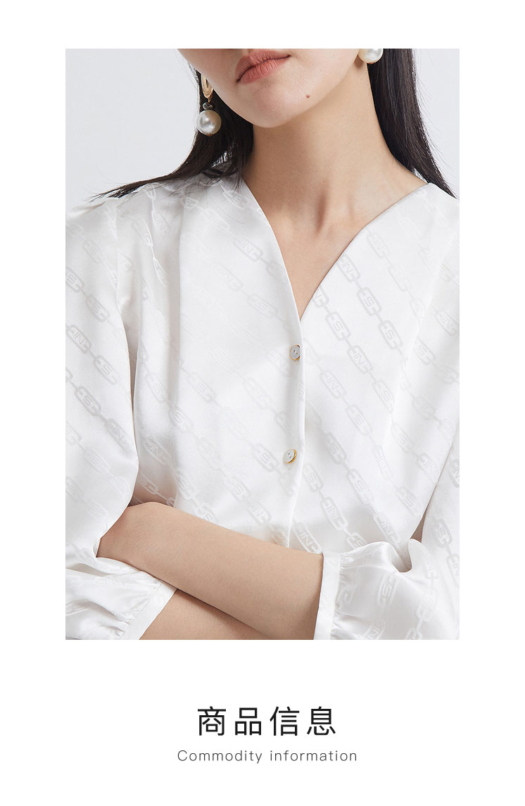 INSUN恩裳2022夏季新品时尚印花光泽感舒适简约百搭真丝衬衫女9C32230120