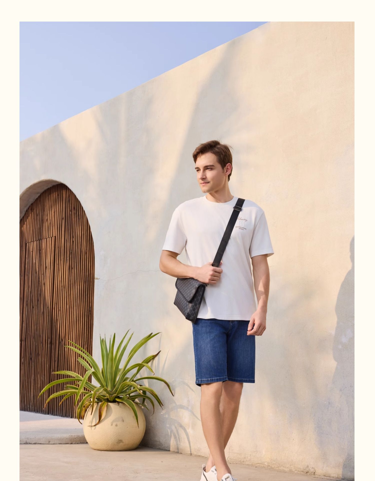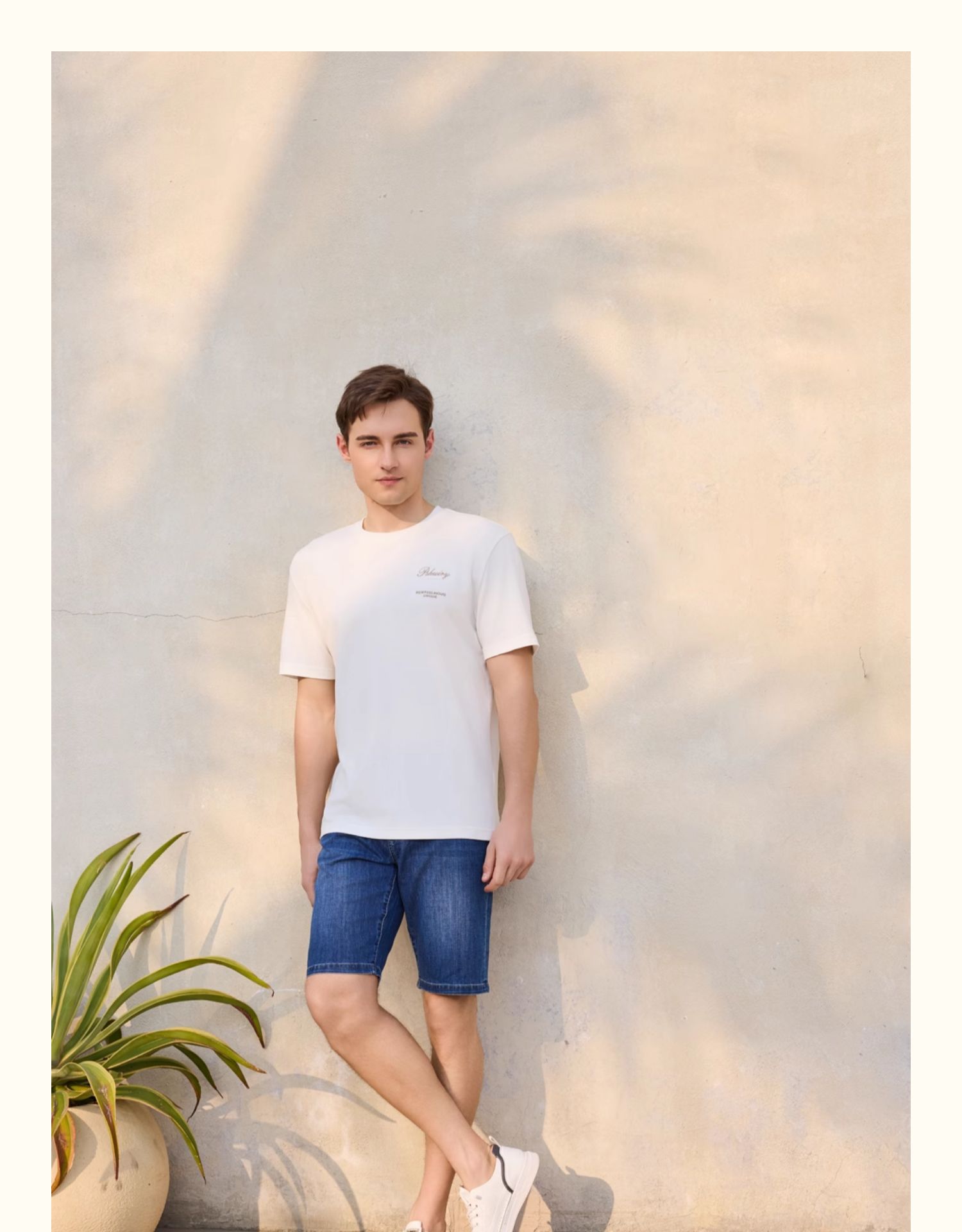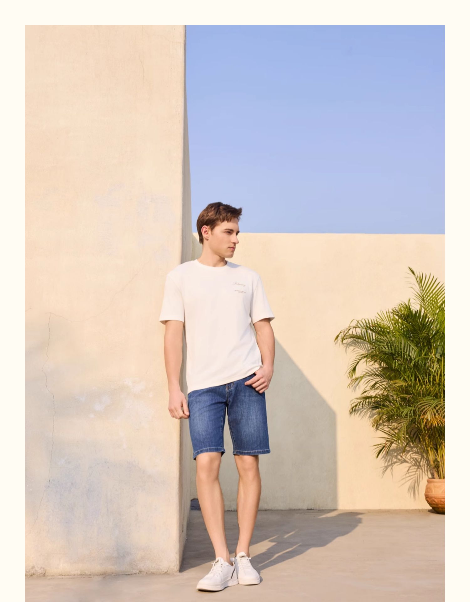 半身缘男裤 夏季商务简洁耐看五分牛仔短裤252201B70103716