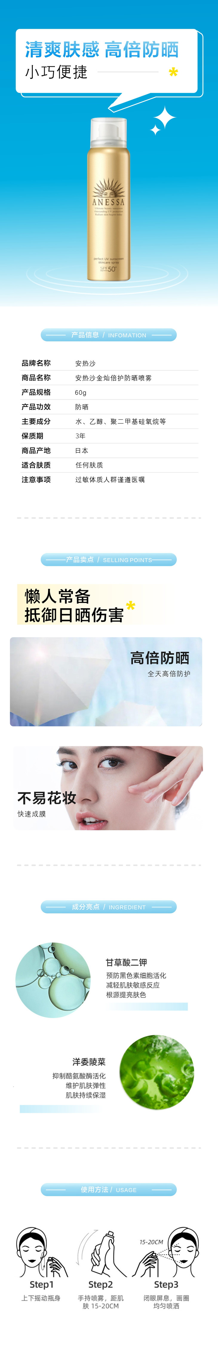ANESSA/安热沙安耐晒防晒金灿倍护防晒喷雾60g