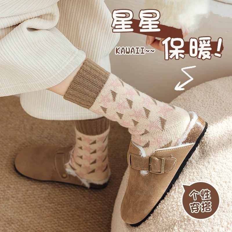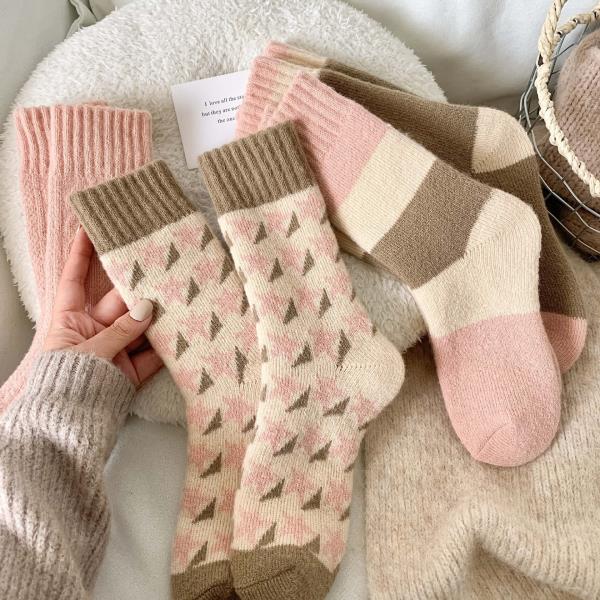「5双装!加绒加厚」毛圈袜子女秋冬季加厚保暖毛圈中筒袜日系粉色甜美可爱少女毛巾袜配饰