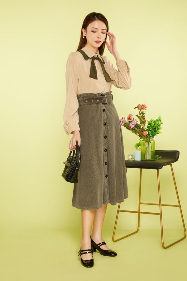AVA 灰色格纹高腰半身裙 4515