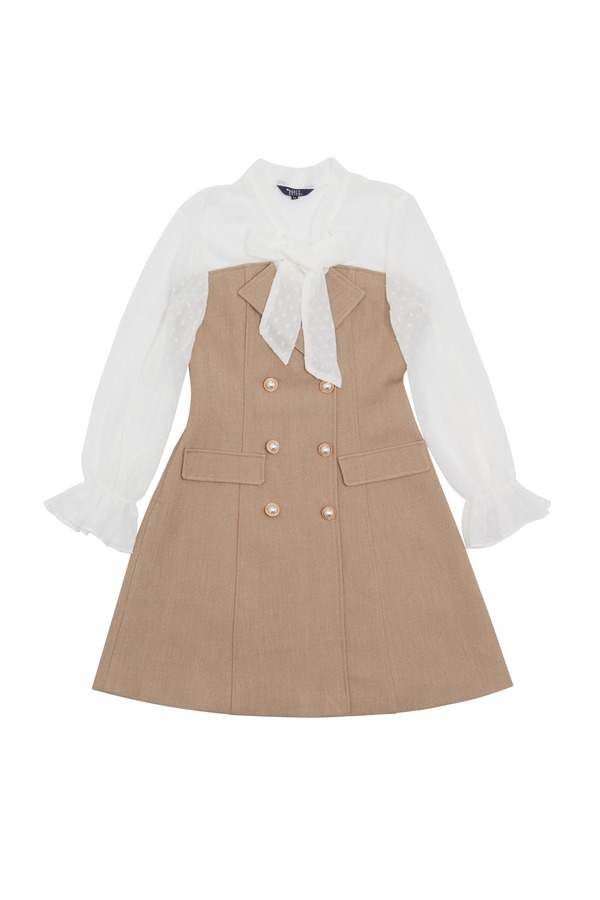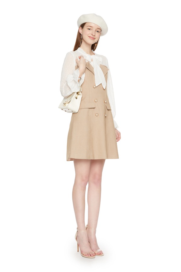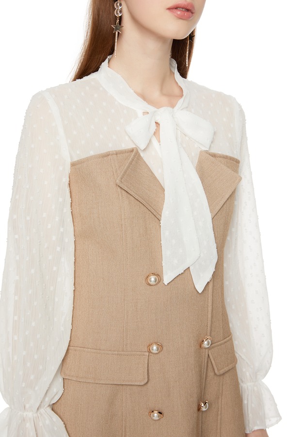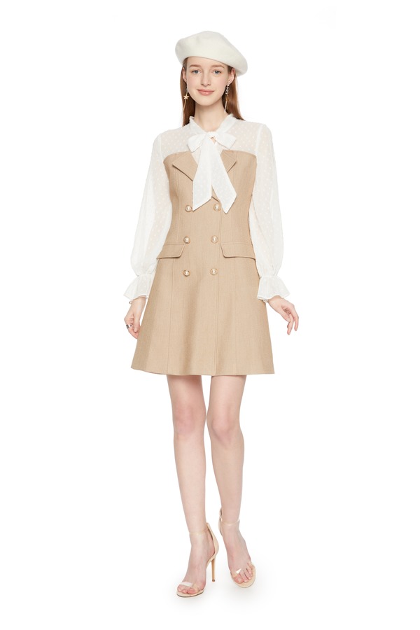 HAYES 拼接系带双排扣连衣裙 5960