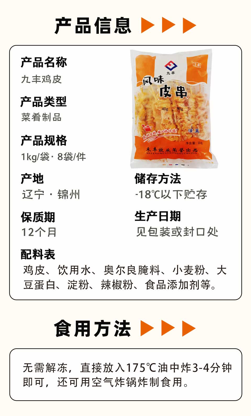 【会员专享】九丰鸡皮串1kg/袋(20串) 8袋/件