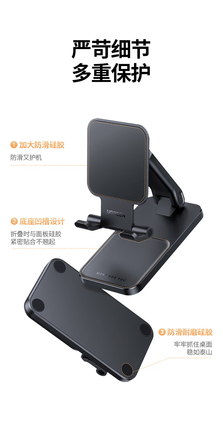 绿联手机支架 桌面折叠升降平板ipad支架懒人床头直播游戏阅读追剧多功能小巧便捷适用苹果16Pro华为